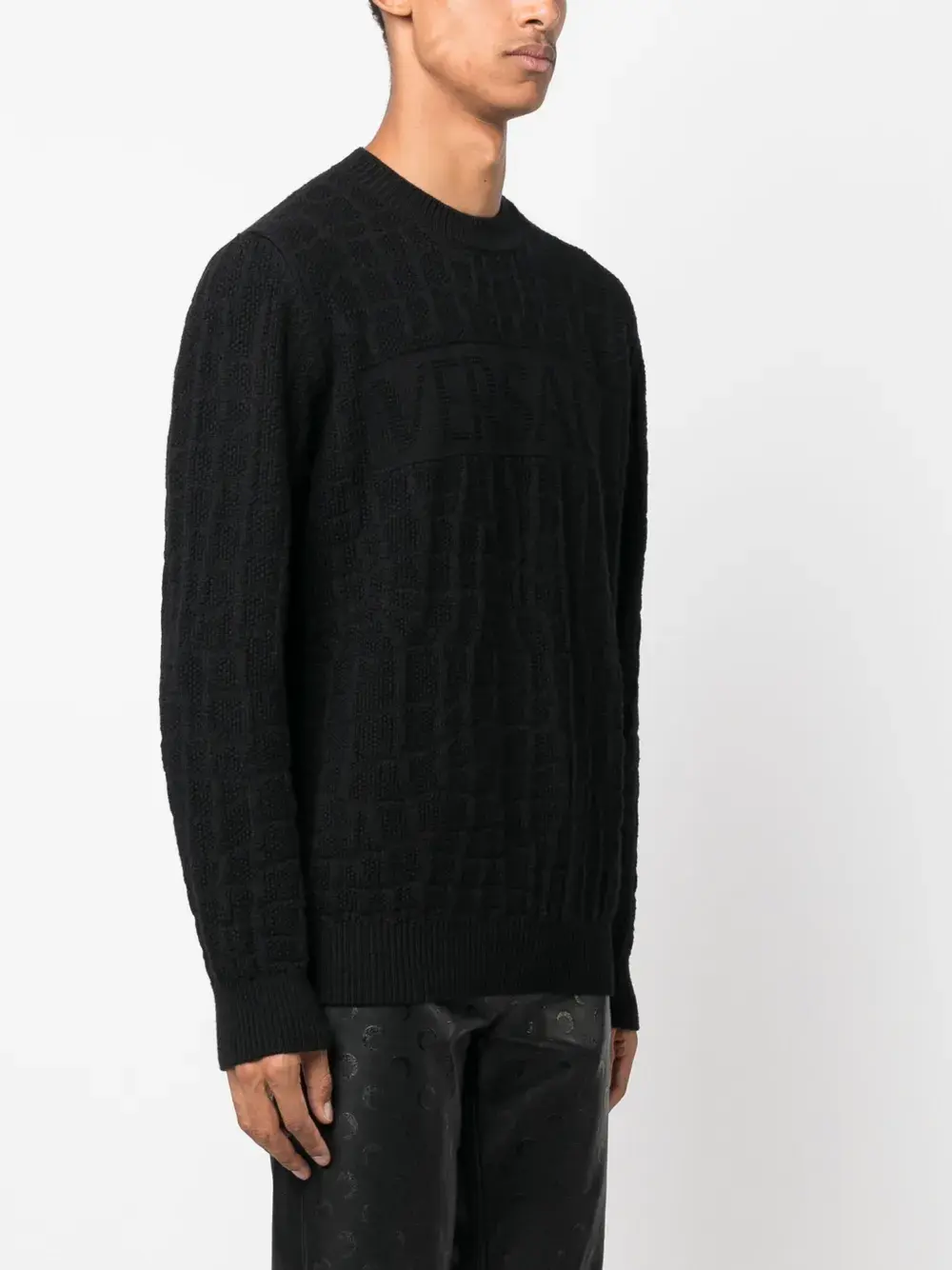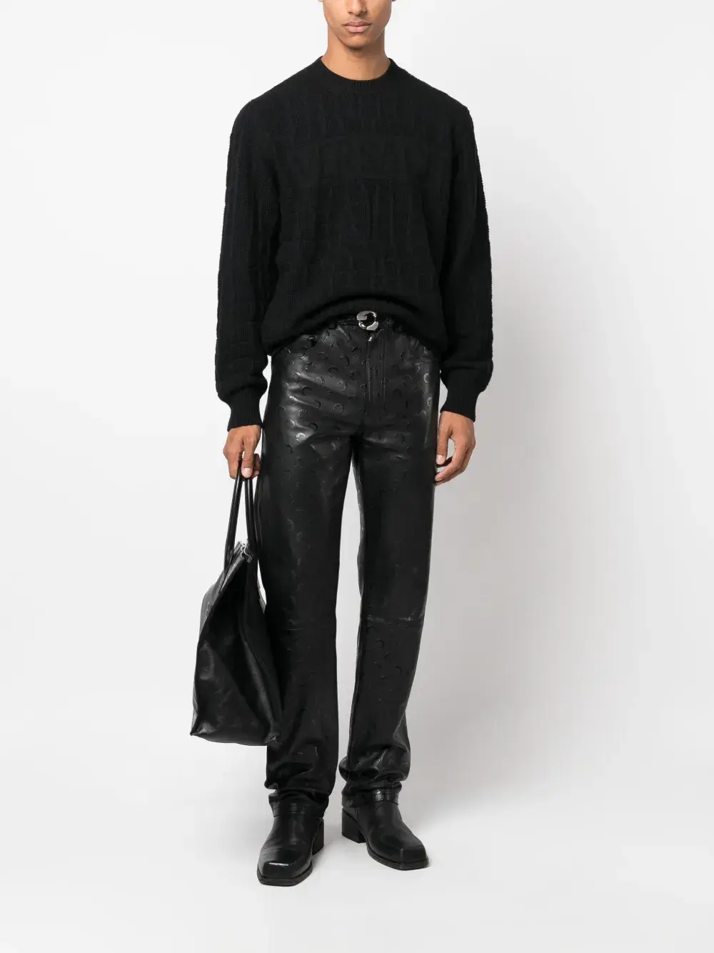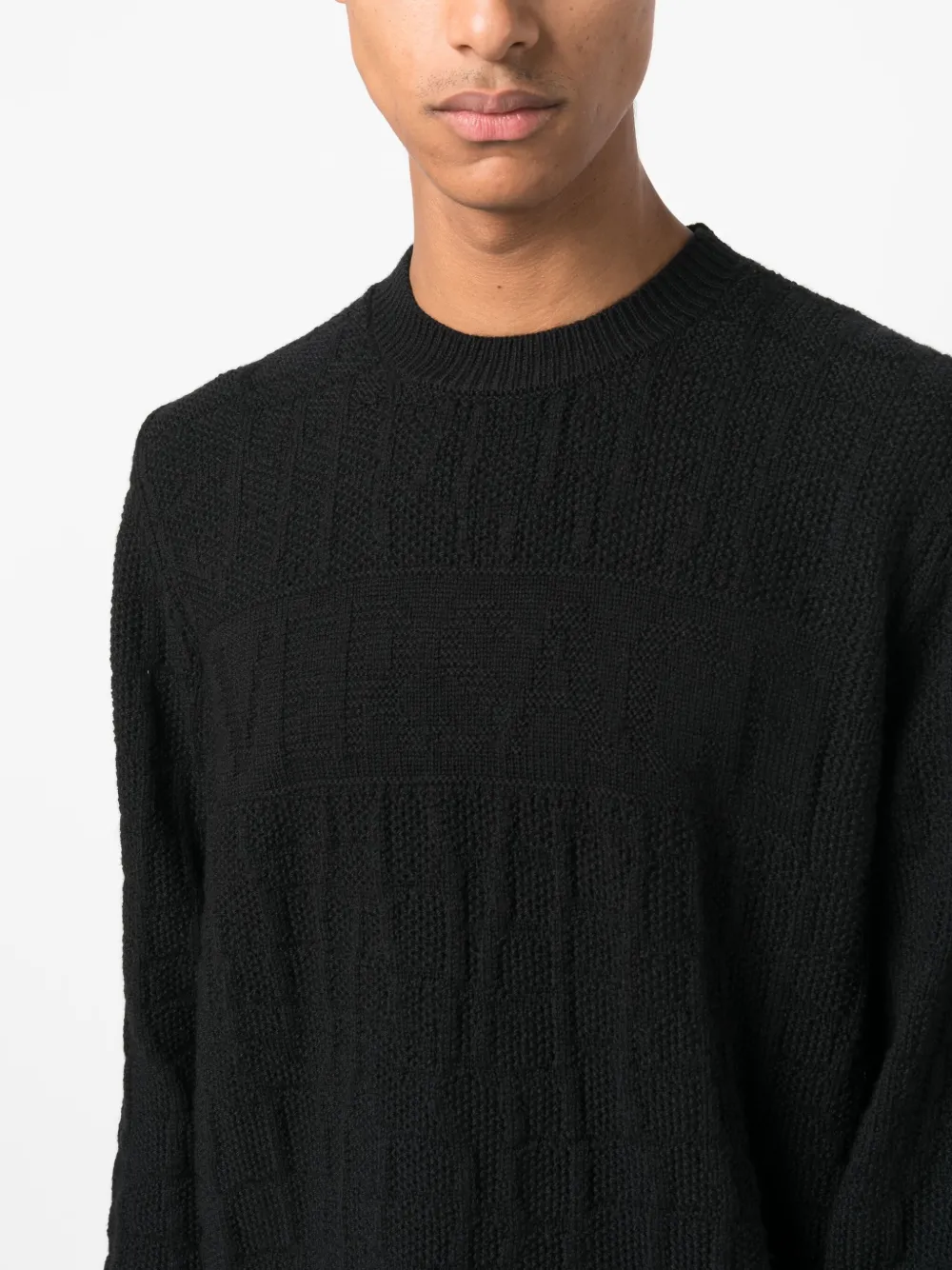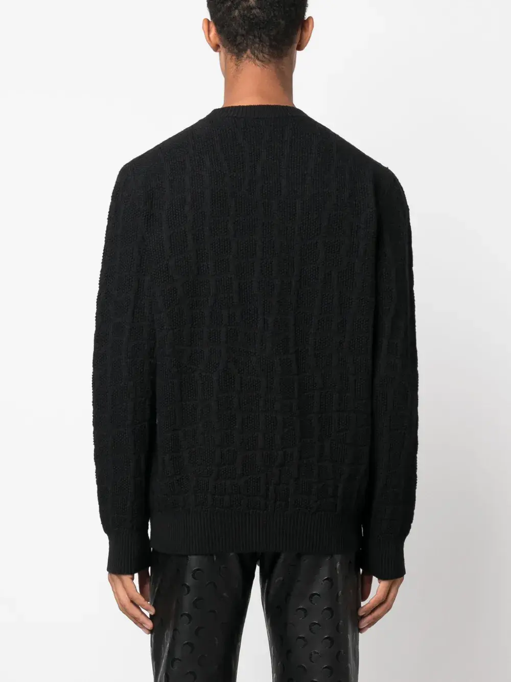Черный, шерсть, фактурная вязка, анималистичный принт, отделка в рубчик, круглый вырез, приспущенные плечи, длинные рукава и прямой подол.