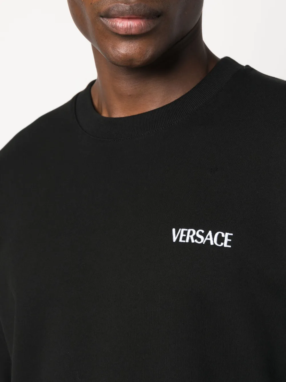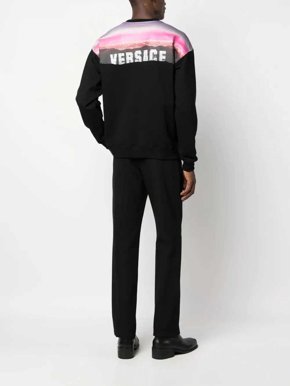 Черный/разноцветный, хлопок, круглый вырез, принт с логотипом на груди, длинные рукава, графичный принт на спине и края в рубчик.