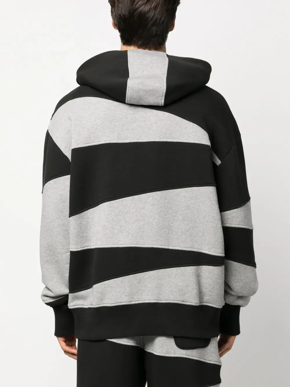 Черный/серый, хлопок, флисовый материал, модель анорак, геометричные вставки, нашивка с логотипом на груди, классический капюшон, длинные рукава, карман-муфта и прямой подол.