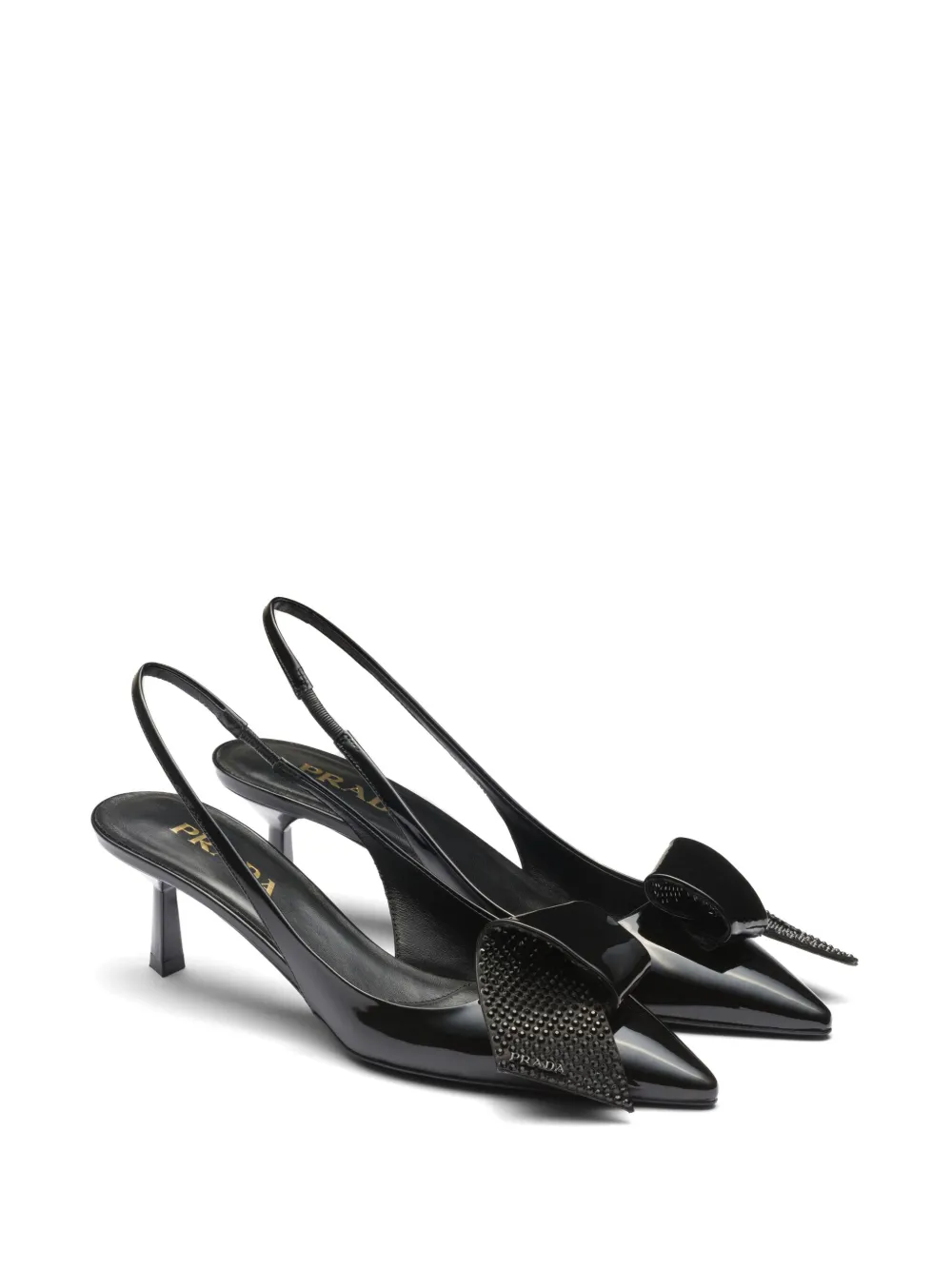 Лакированные туфли с аппликацией Prada, черный
