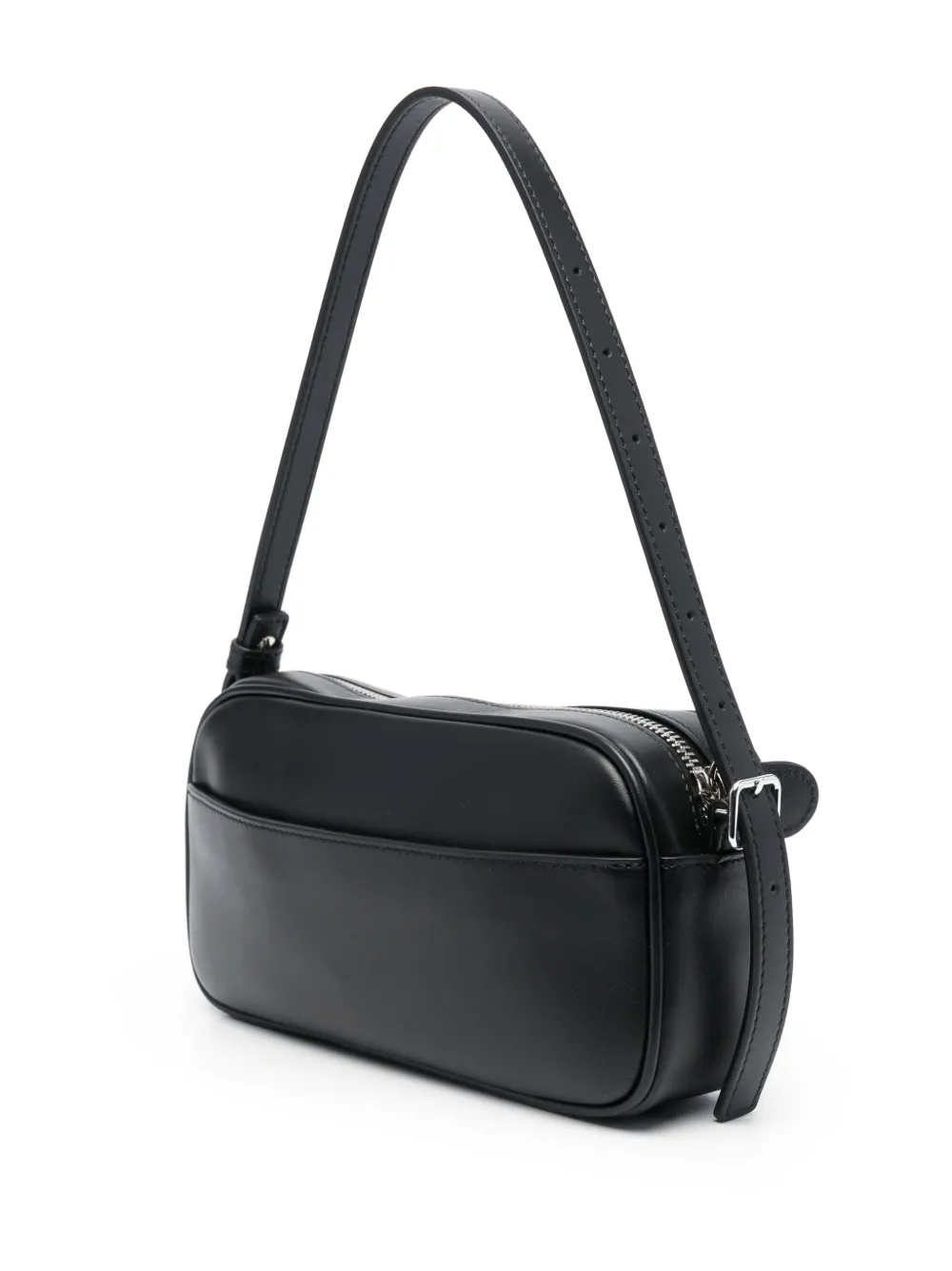 Черный/белый, телячья кожа, нашивка с логотипом спереди, серебристая фурнитура, застежка на молнии сверху, регулируемый ремень на плечо, прорезной карман сзади, нашивка с логотипом внутри, внутренний прорезной карман и основное отделение.