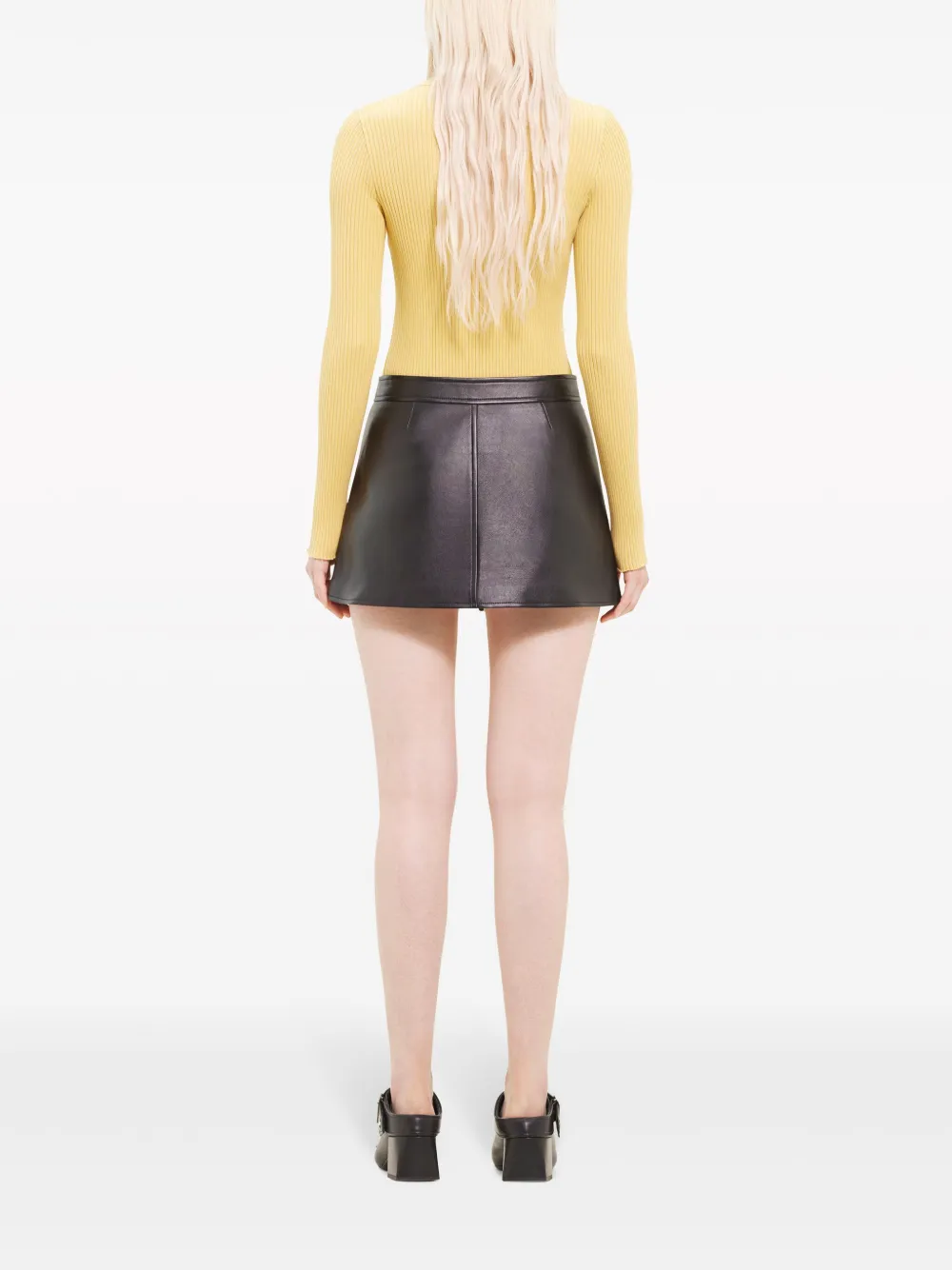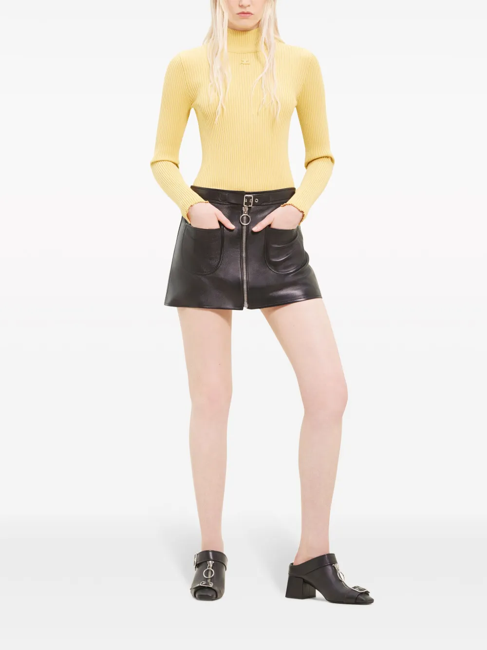 Кожаная мини-юбка на молнии Courrèges, черный