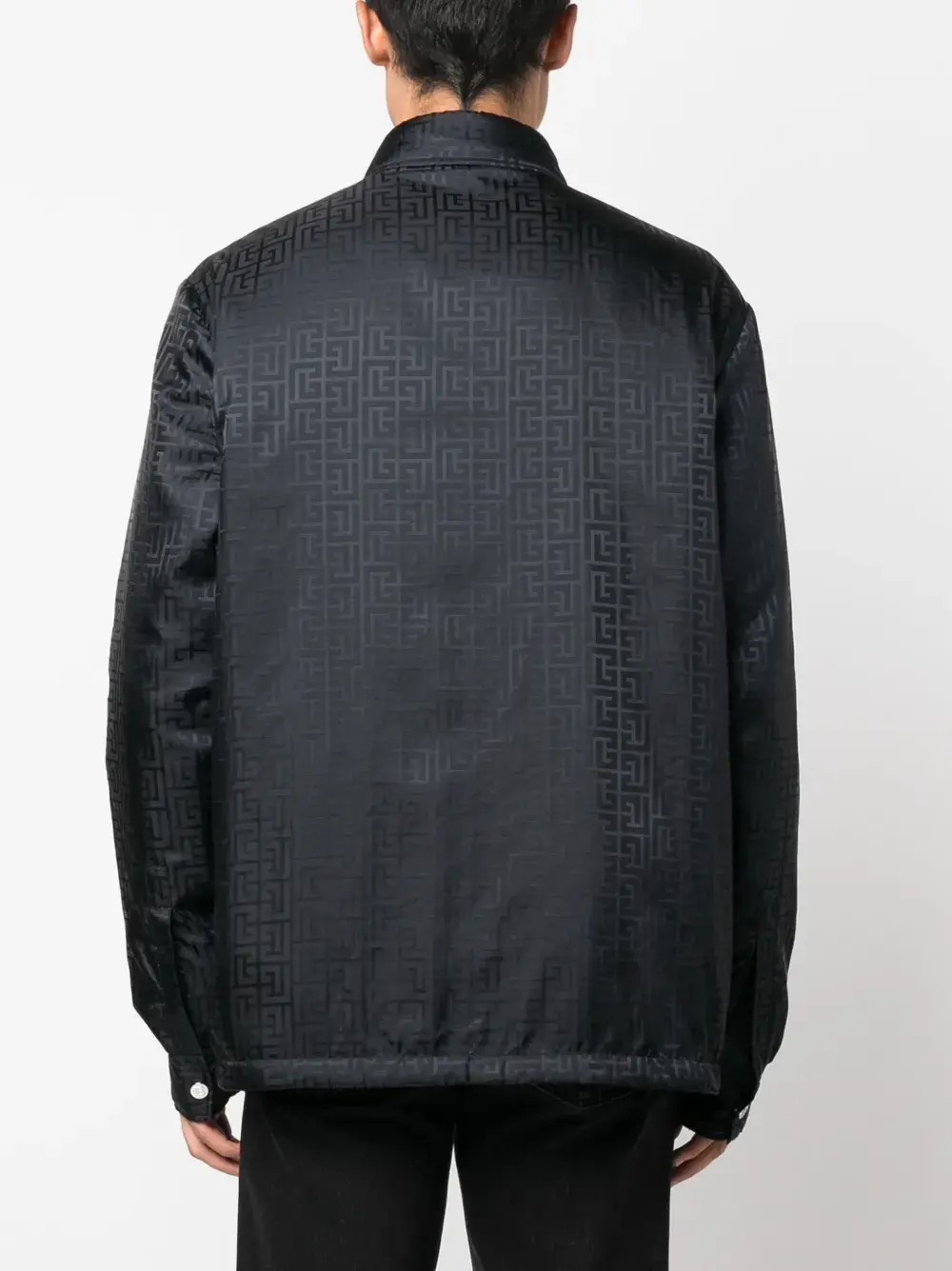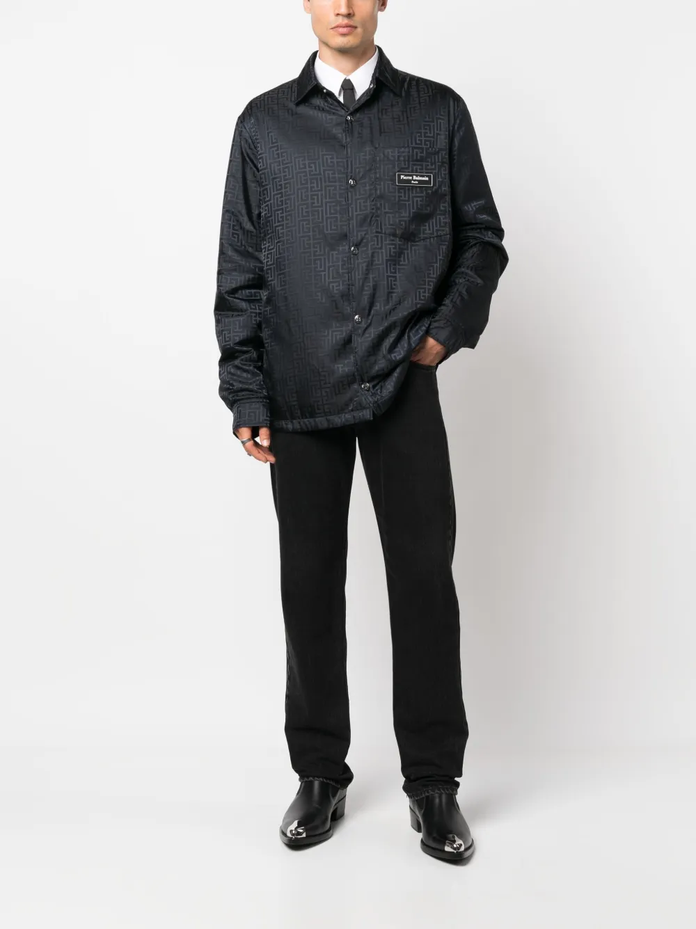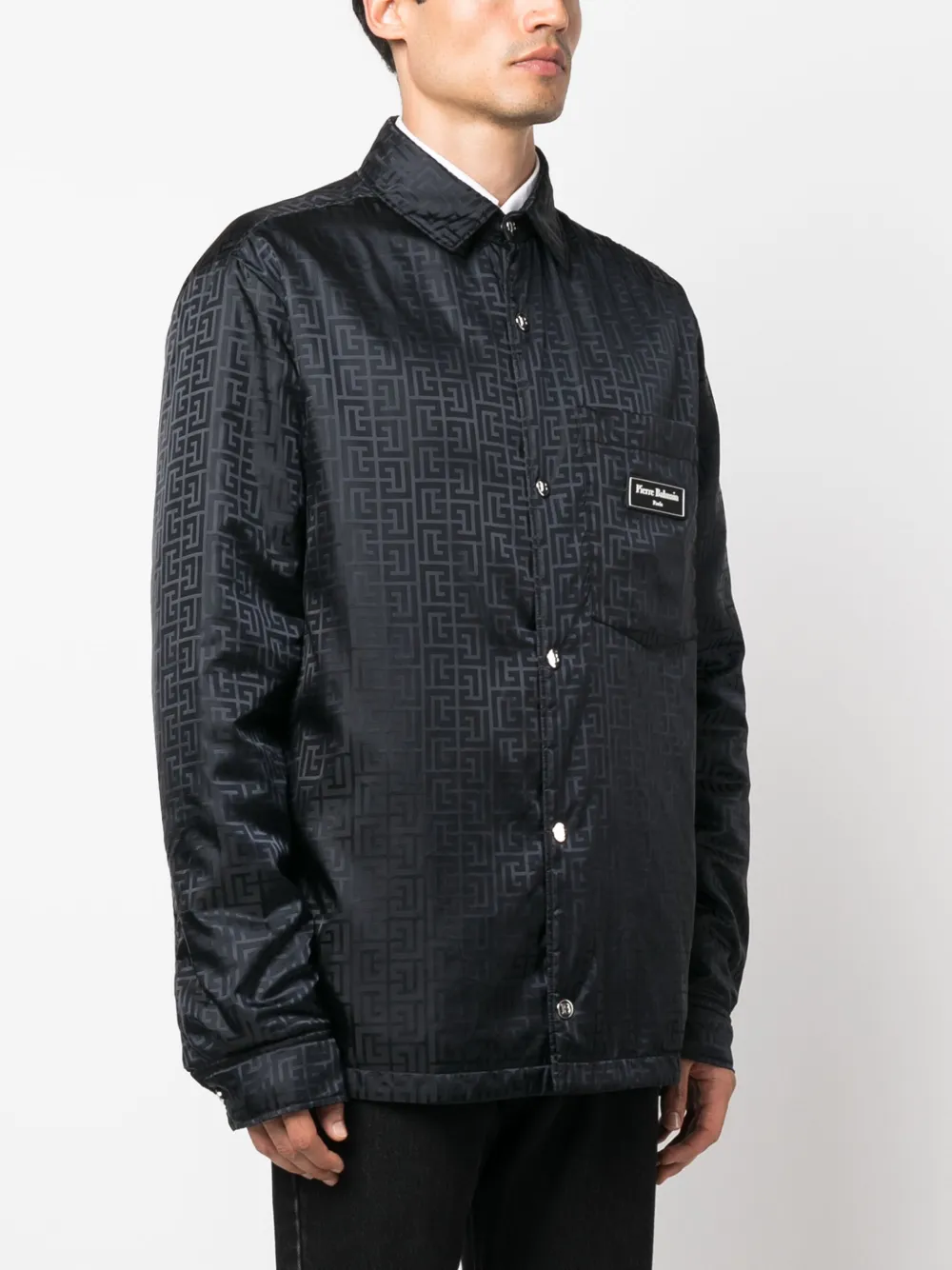 Сплошной графичный принт, узор с изображением монограммы, нашивка с логотипом спереди, классический воротник, пуговицы с выгравированным логотипом, застежка на кнопках спереди, длинные рукава и накладной карман спереди.