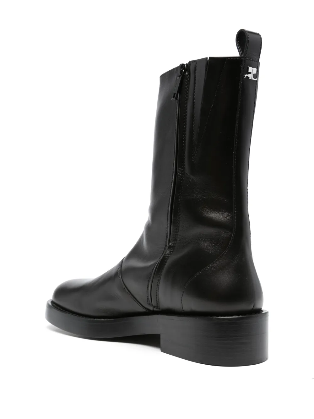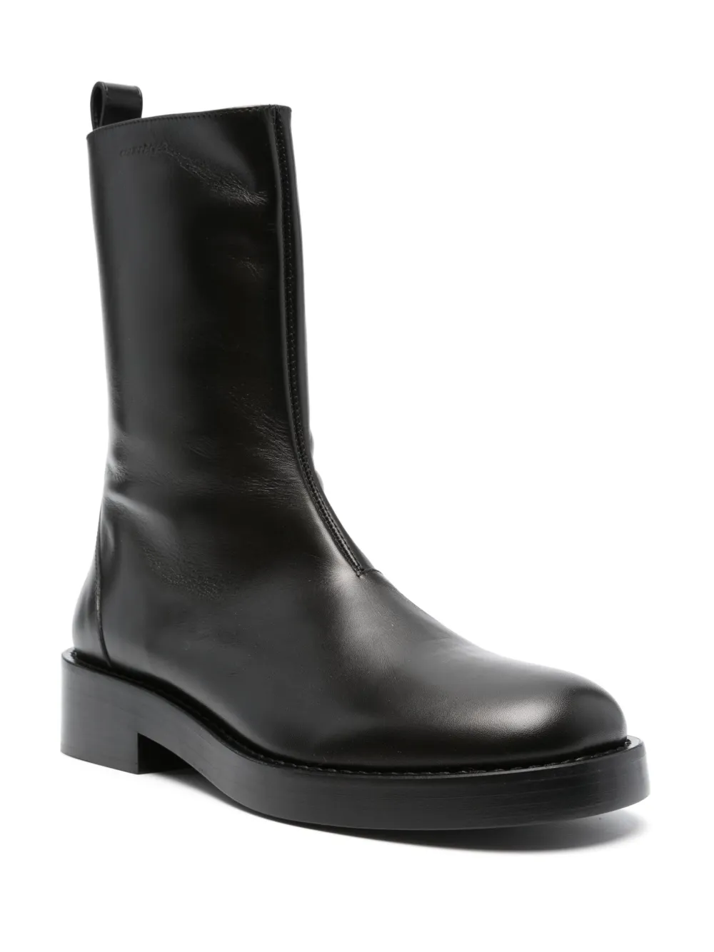 Черный, телячья кожа, петля для подтягивания с логотипом, стелька с логотипом, закругленный носок, застежки на молнии сбоку и кожаная подошва.