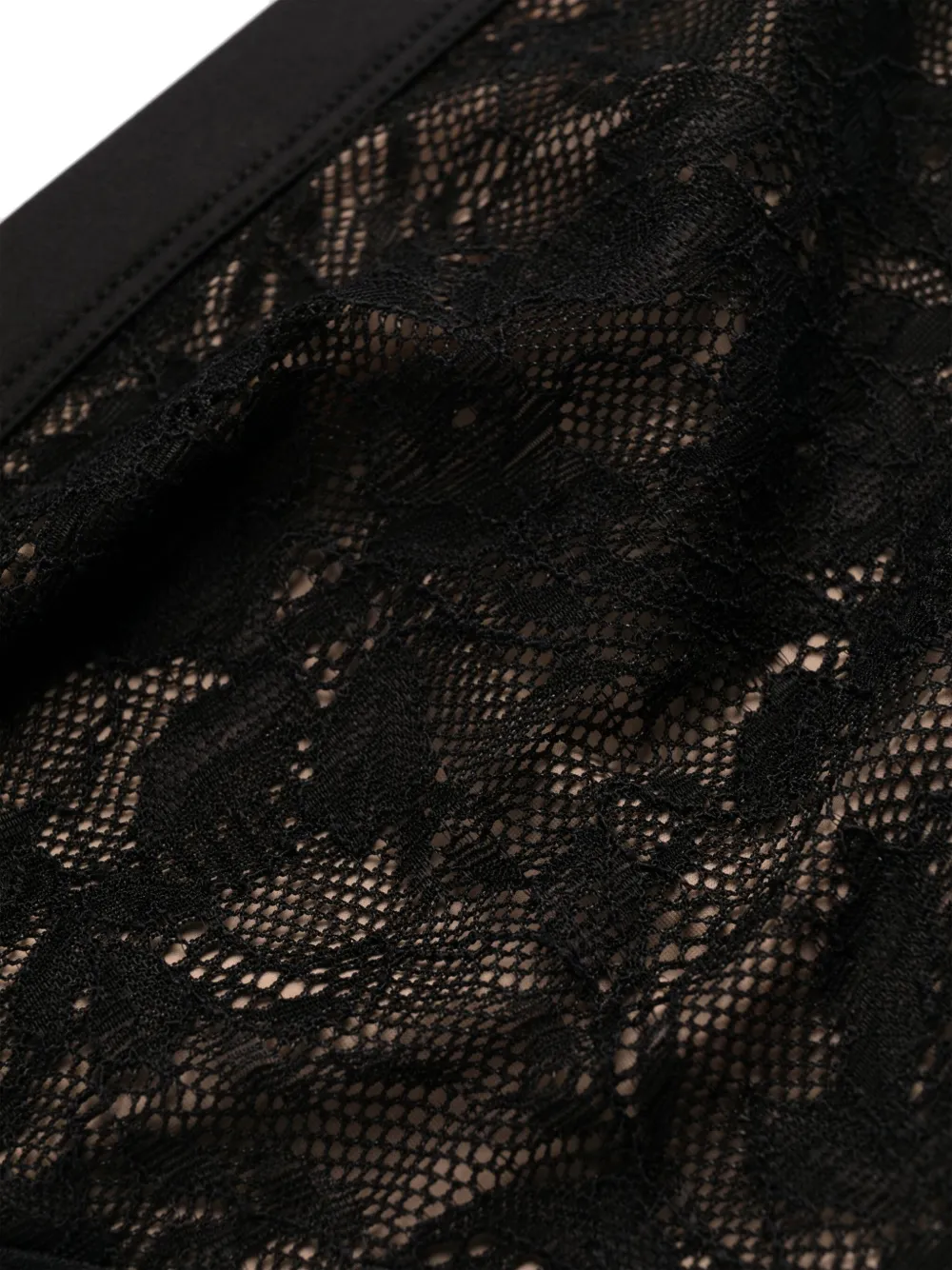 Черный, переработанный нейлон, вставки из цветочного кружева, модель «бабочка» и эластичный пояс. Эту вещь можно примерить, но только поверх собственного белья. Узнать больше о том, какие товары получают отметку «Ответственный выбор», можно из материала «Как мы оцениваем экологичность и этичность».