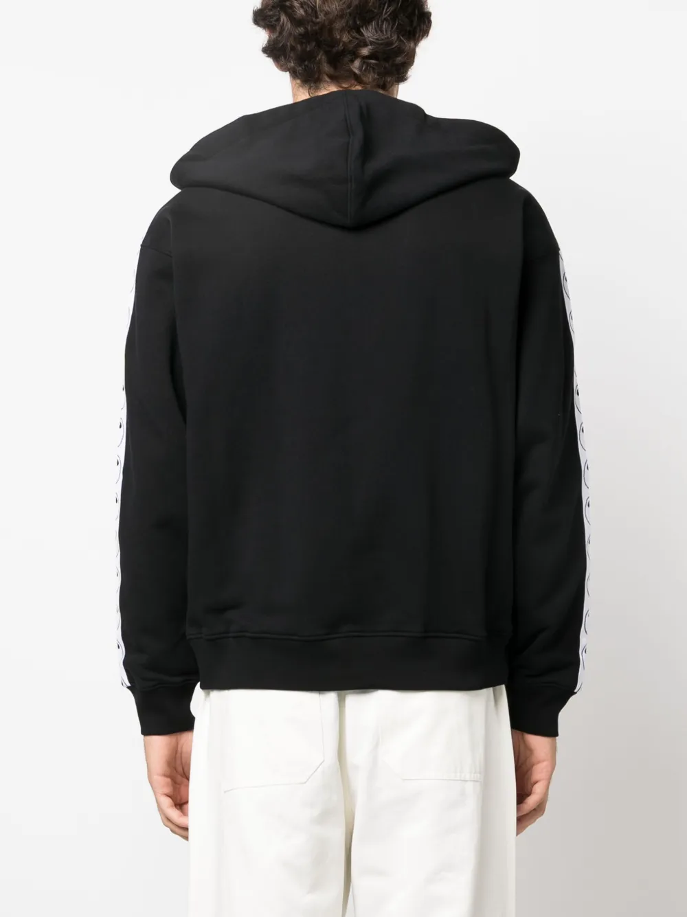 Черный, хлопок, отделка лентой с логотипом, принт с логотипом на груди, застежка на молнии спереди, длинные рукава, объемный капюшон на шнурке и два передних кармана.