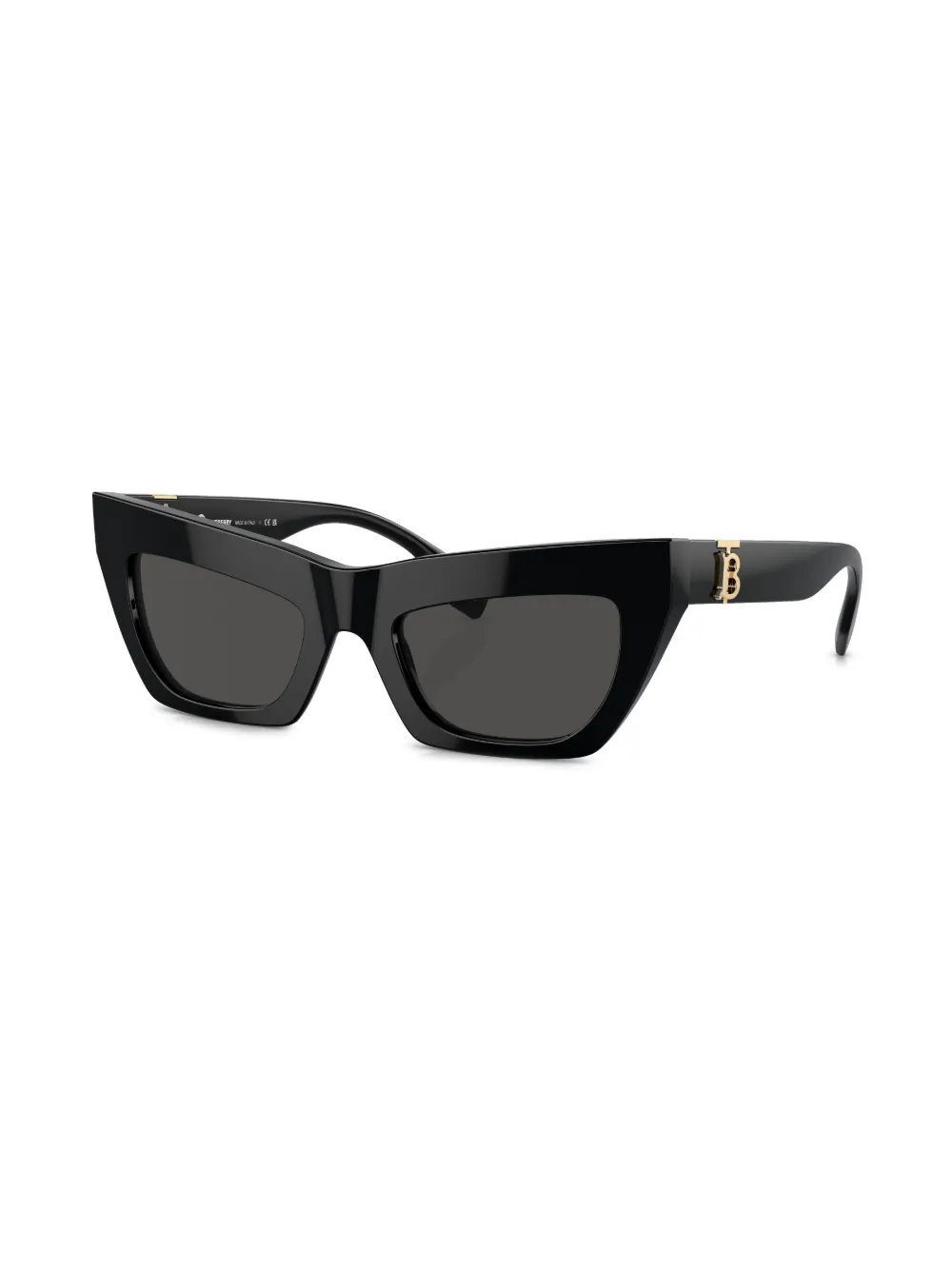 Золотистая фурнитура, декор в виде логотипа с монограммой TB, оправа «кошачий глаз», затемненные линзы, прямые дужки и прямые наконечники дужек. В комплект входит защитный чехол для очков.