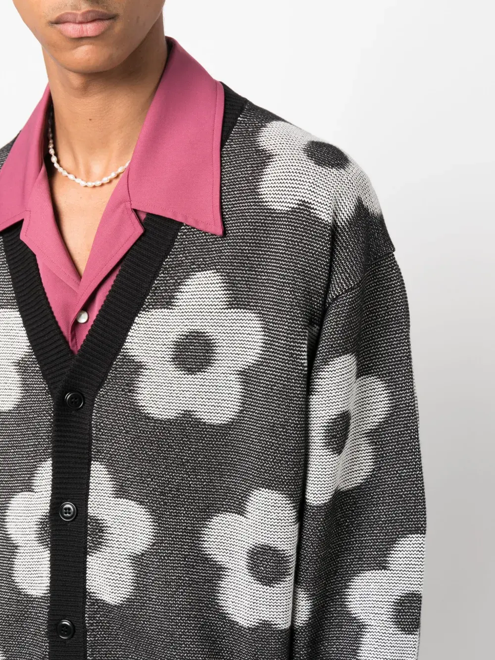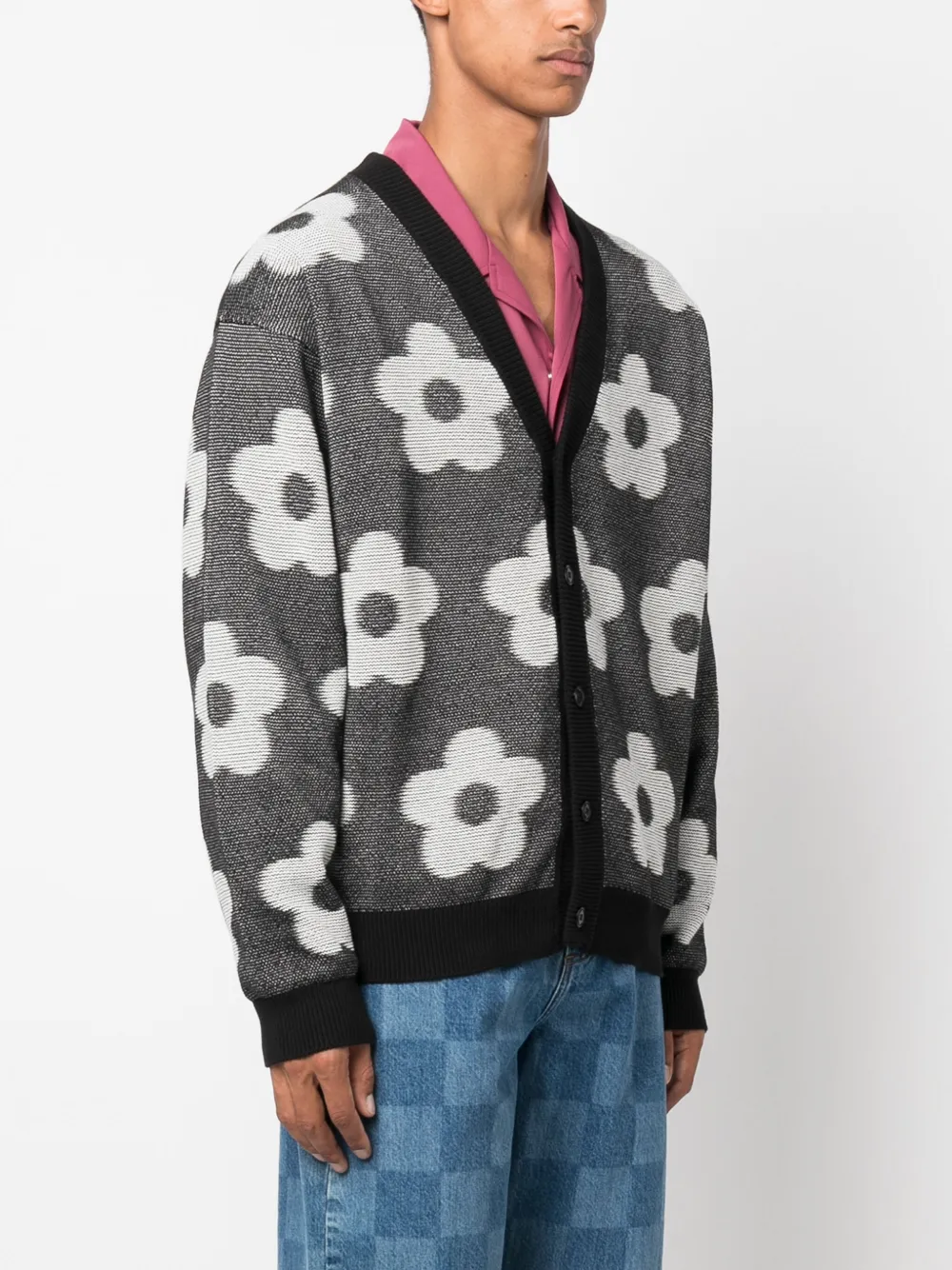 Черный/серый, хлопок, трикотажный материал, узор Boke Flower, застежка на пуговицах спереди, приспущенные плечи и длинные рукава.