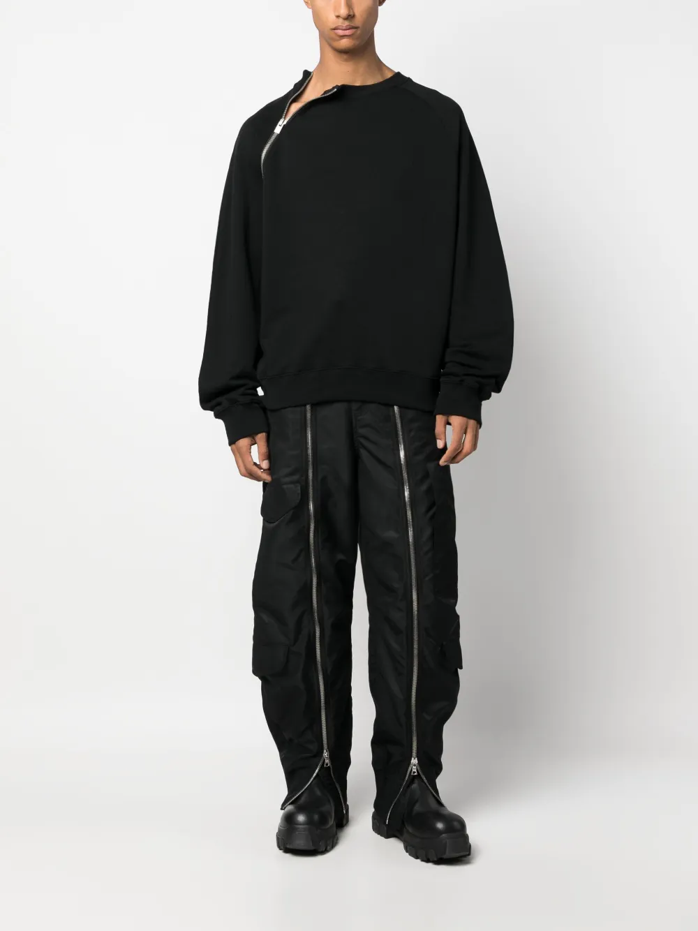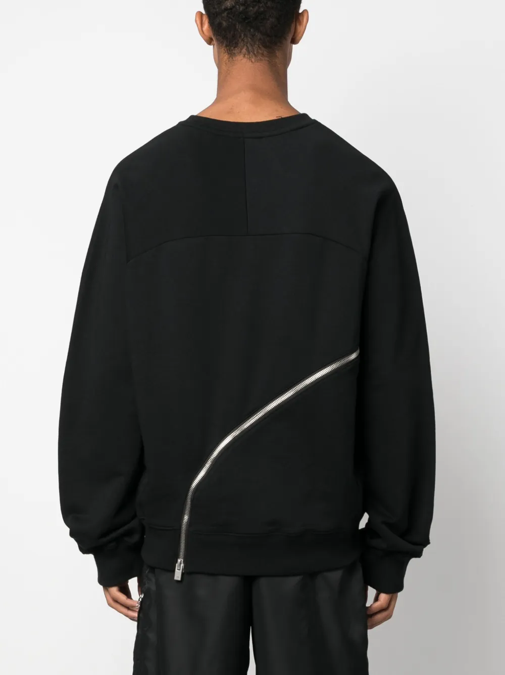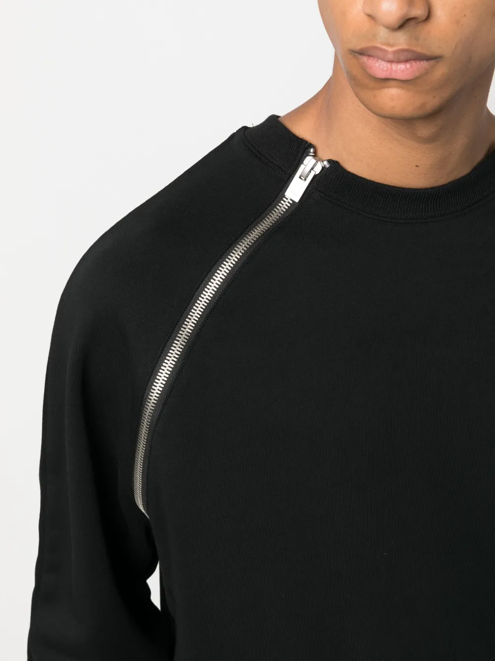 Черный, хлопок, деталь с молнией, круглый вырез и длинные рукава.