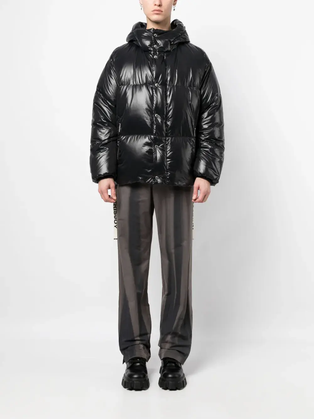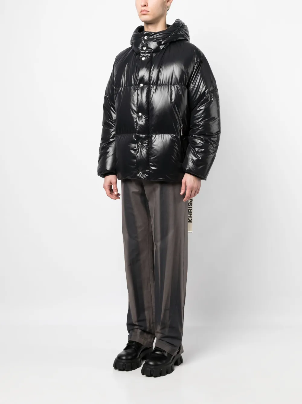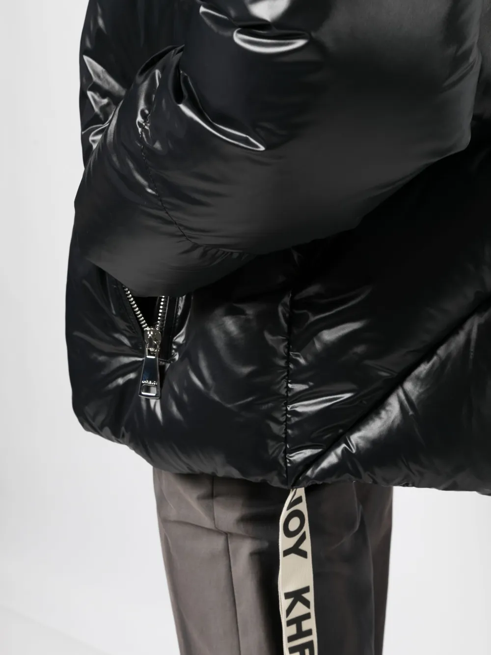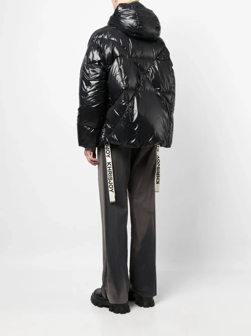 Пуховик с капюшоном и логотипом Khrisjoy, черный