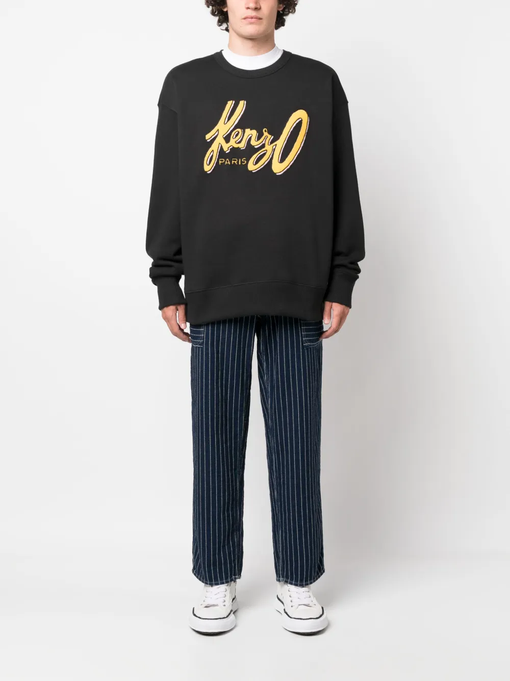 Черный, хлопок, флисовый материал, логотип спереди, круглый вырез, приспущенные плечи, длинные рукава и прямой подол.