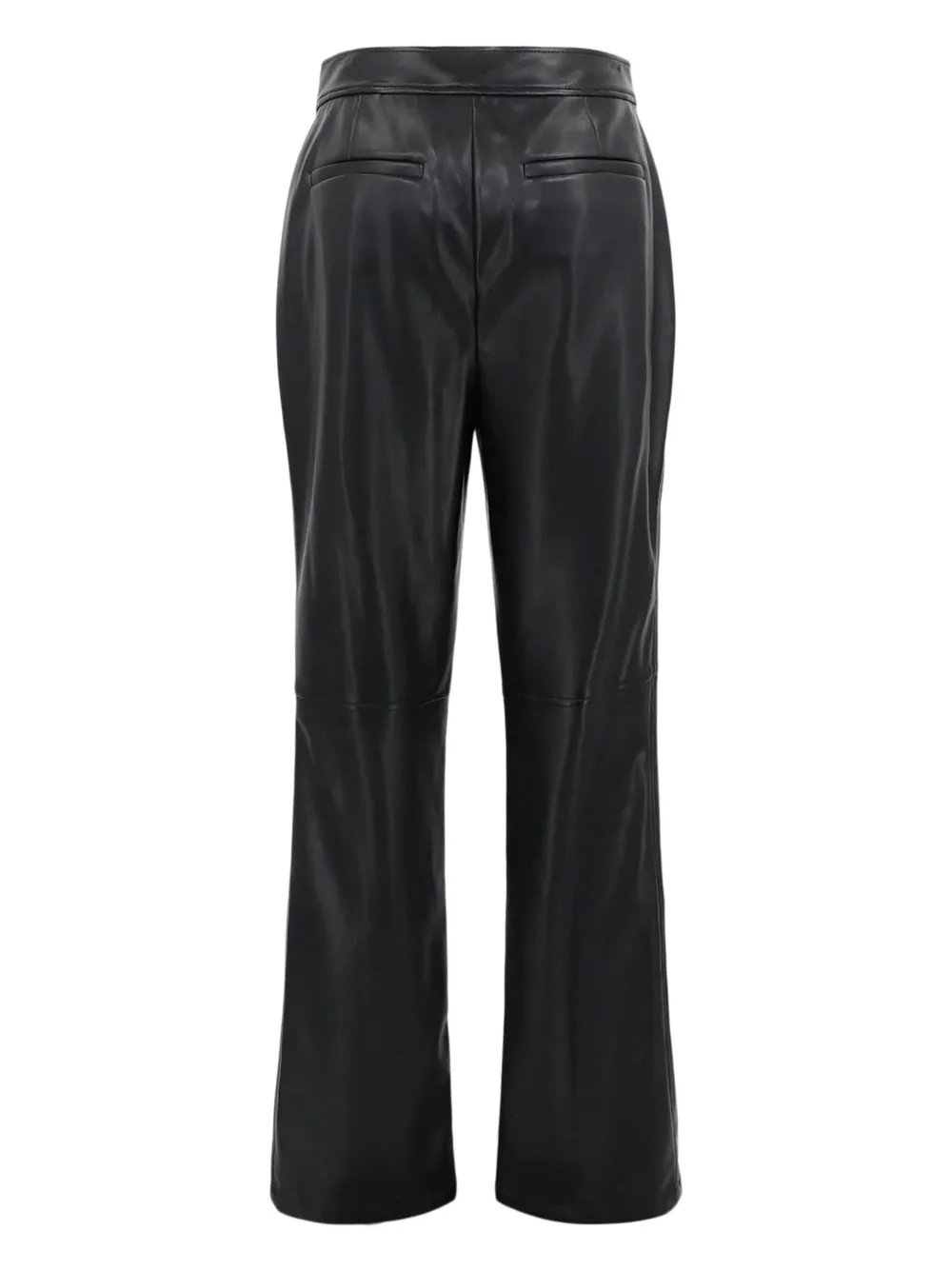 Черный, искусственная кожа, прямой крой, завышенная талия, потайная застежка на молнии и пуговицах, два боковых кармана с листочкой и два кармана с листочкой сзади.