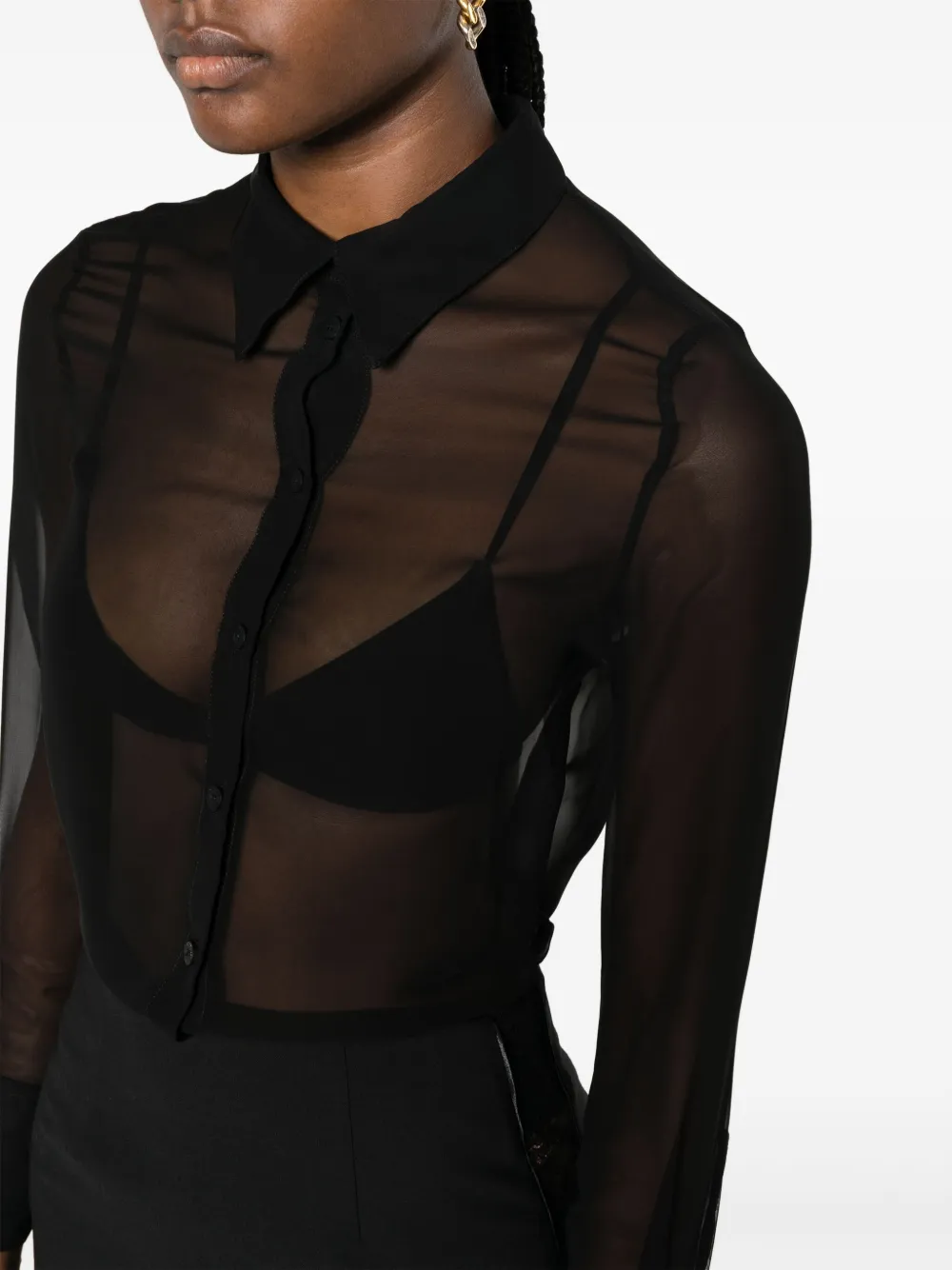Полупрозрачная рубашка с длинными рукавами Maison Close, черный