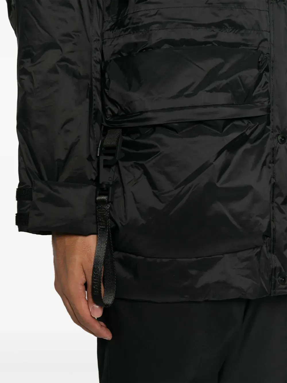 Подробнее о товаре: Черный, дутый материал, проклеенные швы, ремешки, воротник с кулиской, классический капюшон, застежка на кнопках спереди, длинные рукава, манжеты на липучках, два нагрудных кармана с листочкой, два передних кармана с клапанами и флисовая подкладка. Узнать больше о том, какие товары получают отметку «Ответственный выбор», можно из материала «Как мы оцениваем экологичность и этичность».