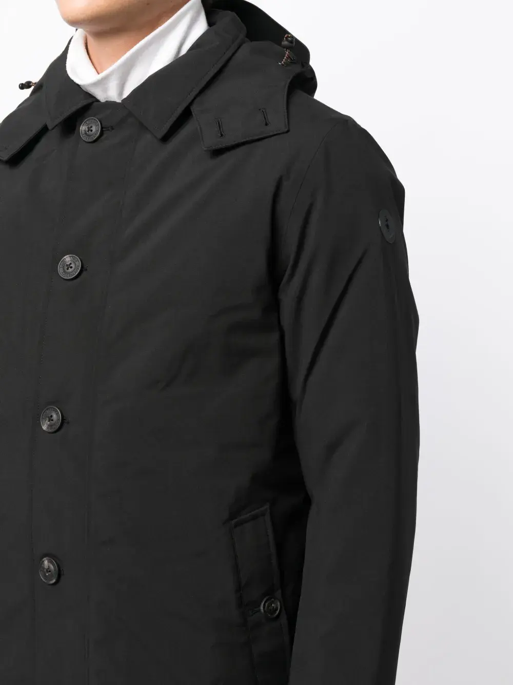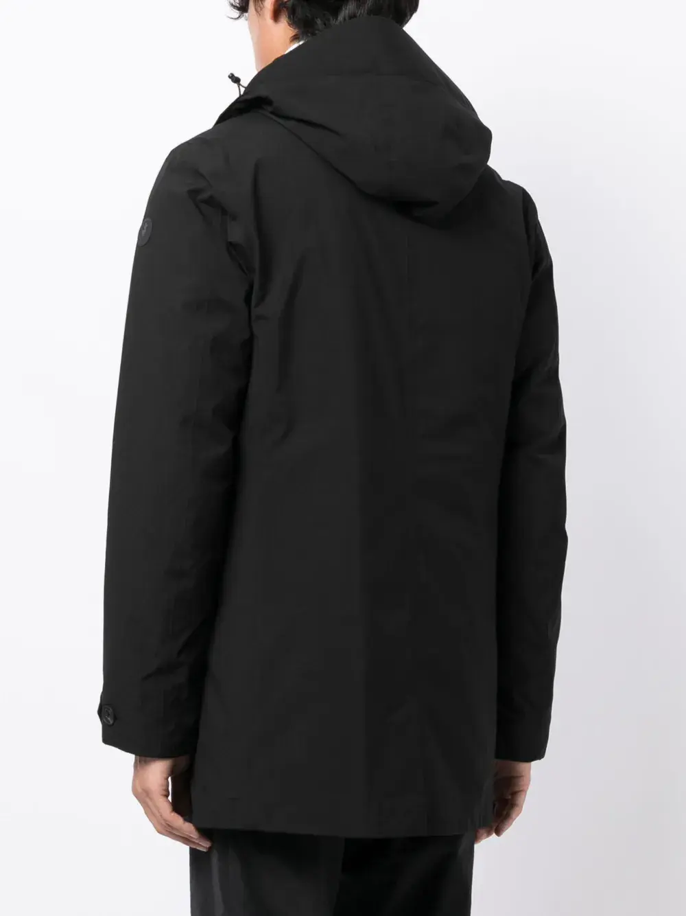 Подробнее о товаре: Черный, переработанный полиэстер, дутый материал, классический капюшон, потайная пуговичная застежка спереди, потайная молния спереди, длинные рукава, два прорезных кармана сбоку и прямой подол. Этот товар как минимум на 50% состоит из переработанных или повторно использованных материалов. Узнать больше о том, какие товары получают отметку «Ответственный выбор», можно из материала «Как мы оцениваем экологичность и этичность».