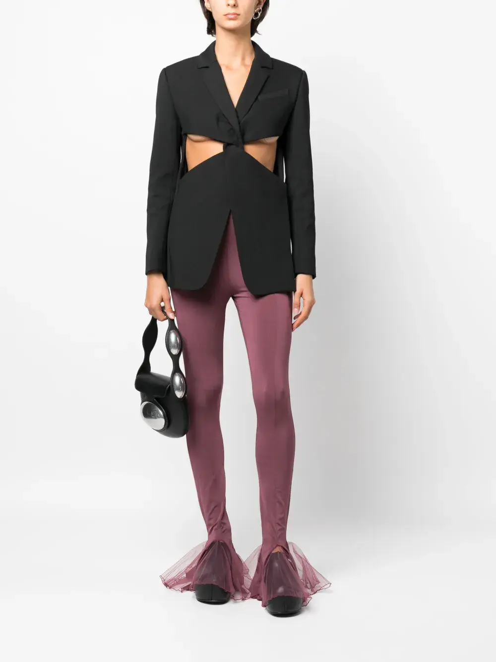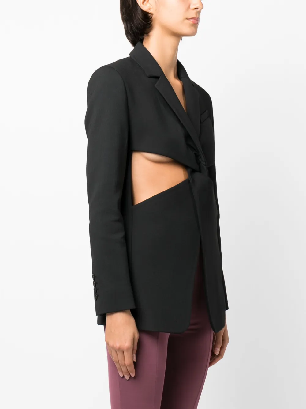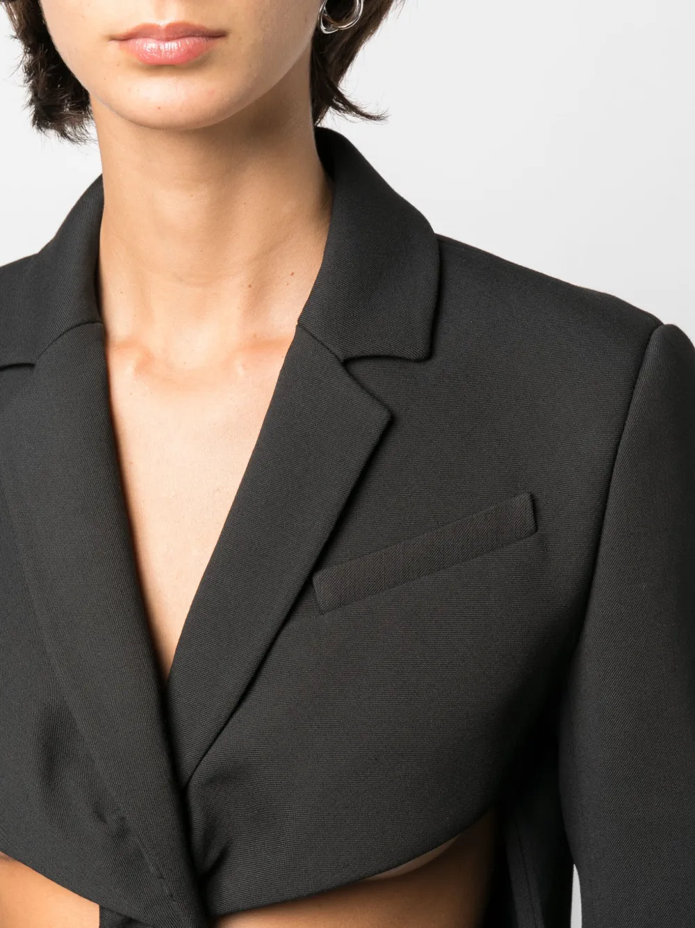 Подробнее о товаре: Черный, смесовый переработанный полиэстер, вырезные детали, перекрученная деталь, зазубренные лацканы, завязки по бокам, длинные рукава, манжеты на пуговицах, прорезной карман на груди, шлица по центру сзади и закругленный подол. Этот товар как минимум на 50% состоит из переработанных или повторно использованных материалов. Узнать больше о том, какие товары получают отметку «Ответственный выбор», можно из материала «Как мы оцениваем экологичность и этичность».