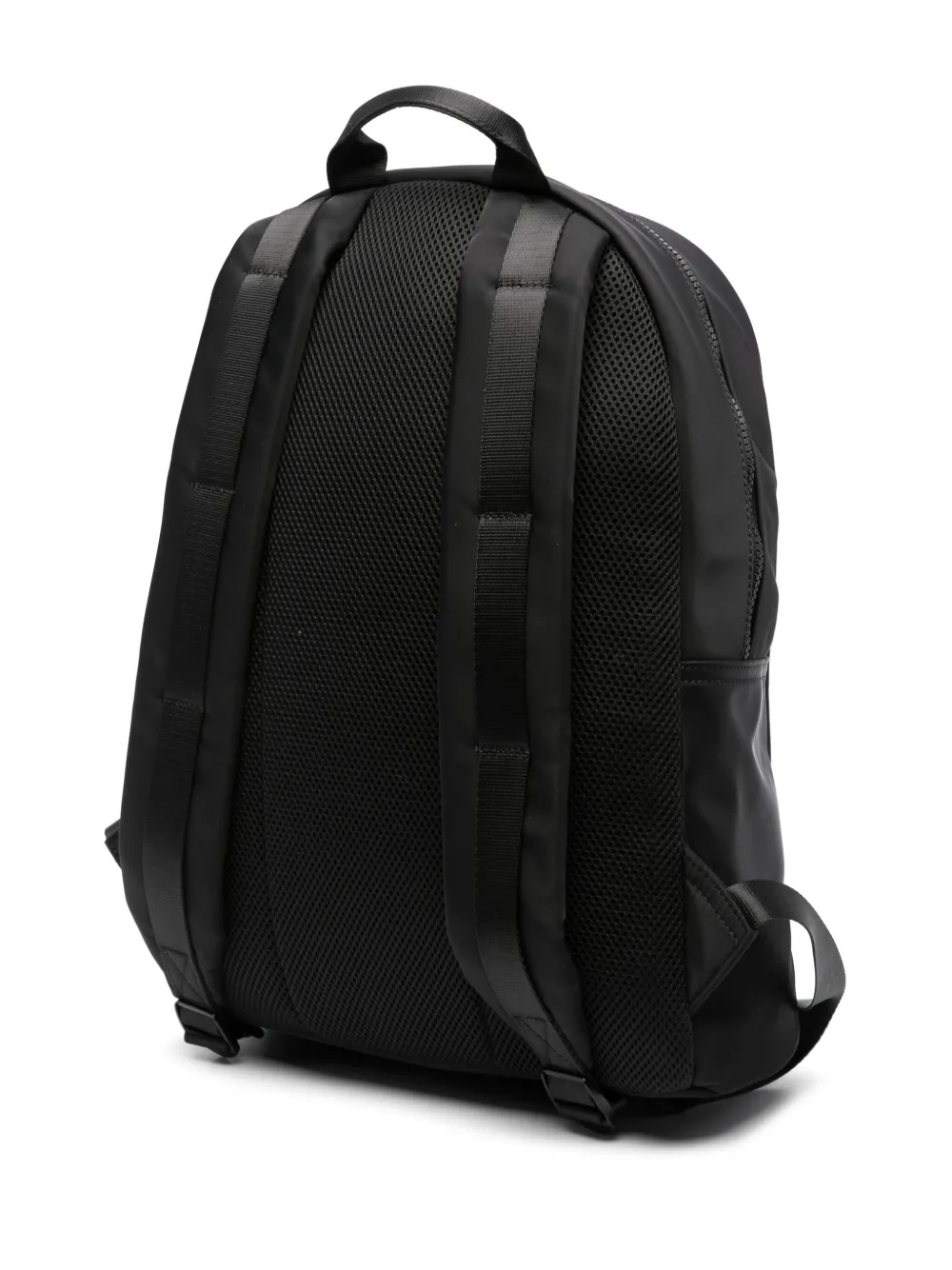Черный, логотип спереди, полоски, круговая молния, верхняя ручка, два регулируемых ремня на плечо, карман на молнии спереди, основное отделение, внутренний карман на молнии и внутреннее отделение для ноутбука.