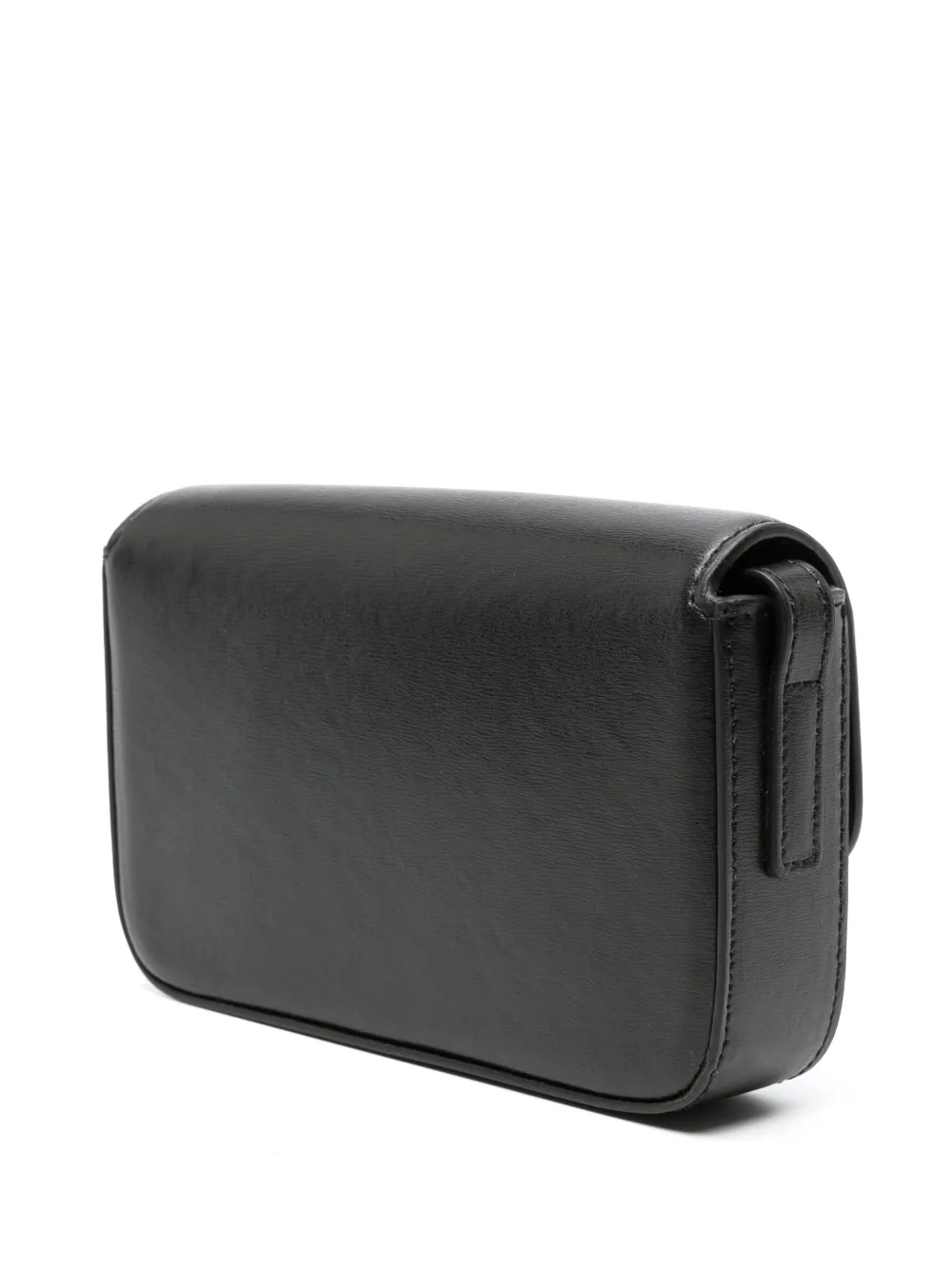 Черный, золотистый, телячья кожа, фактурная отделка, золотистый металлический логотип, принт с изображением пальм, застежка с поворачивающимся замком, регулируемый ремень на плечо, внутренний прорезной карман и цельная подкладка.