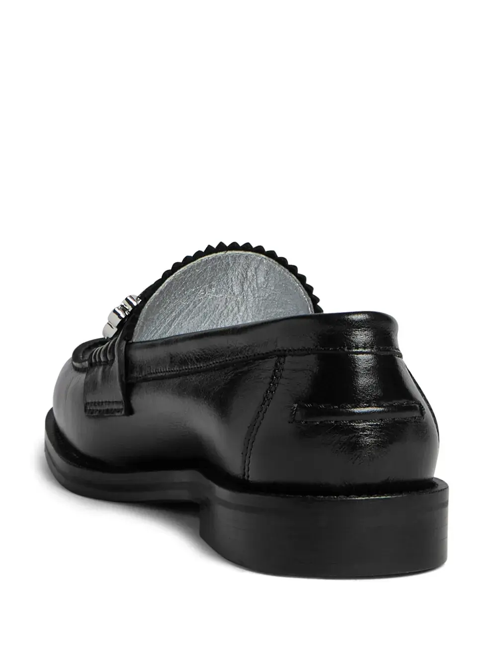 Гладкая текстура кожи, строчка в тон, серебристый металлический логотип, тисненый логотип сбоку, миндалевидный носок, модель без застежки, кожаная стелька с логотипом и кожаная подошва.