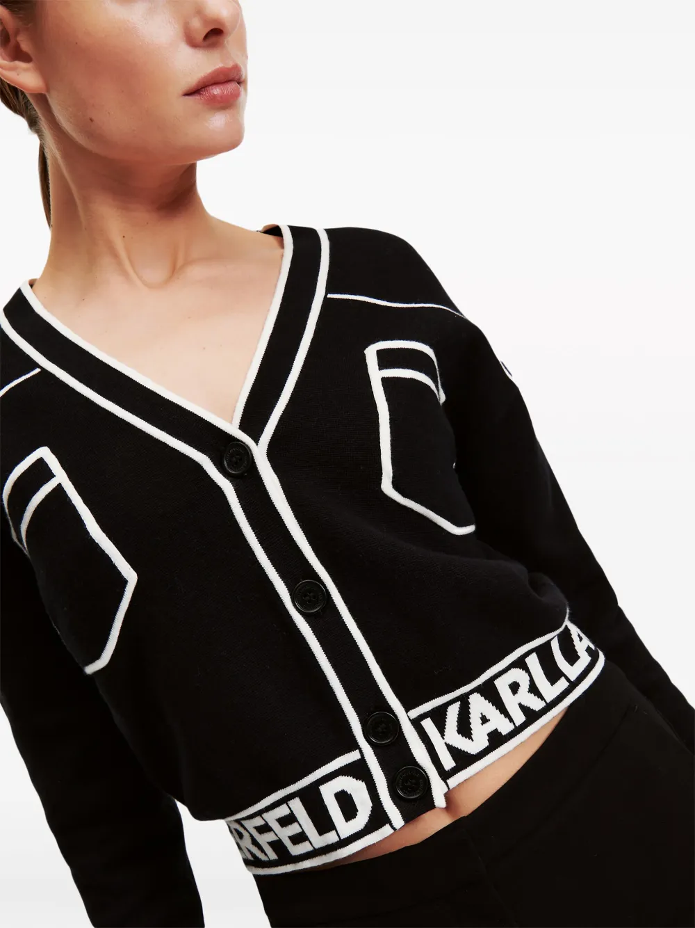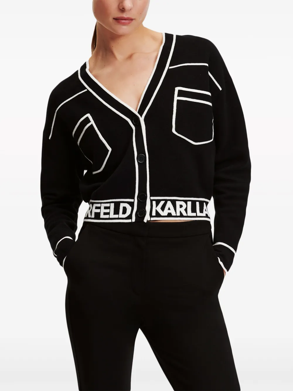 Укороченный кардиган с логотипом KARL LAGERFELD, черный