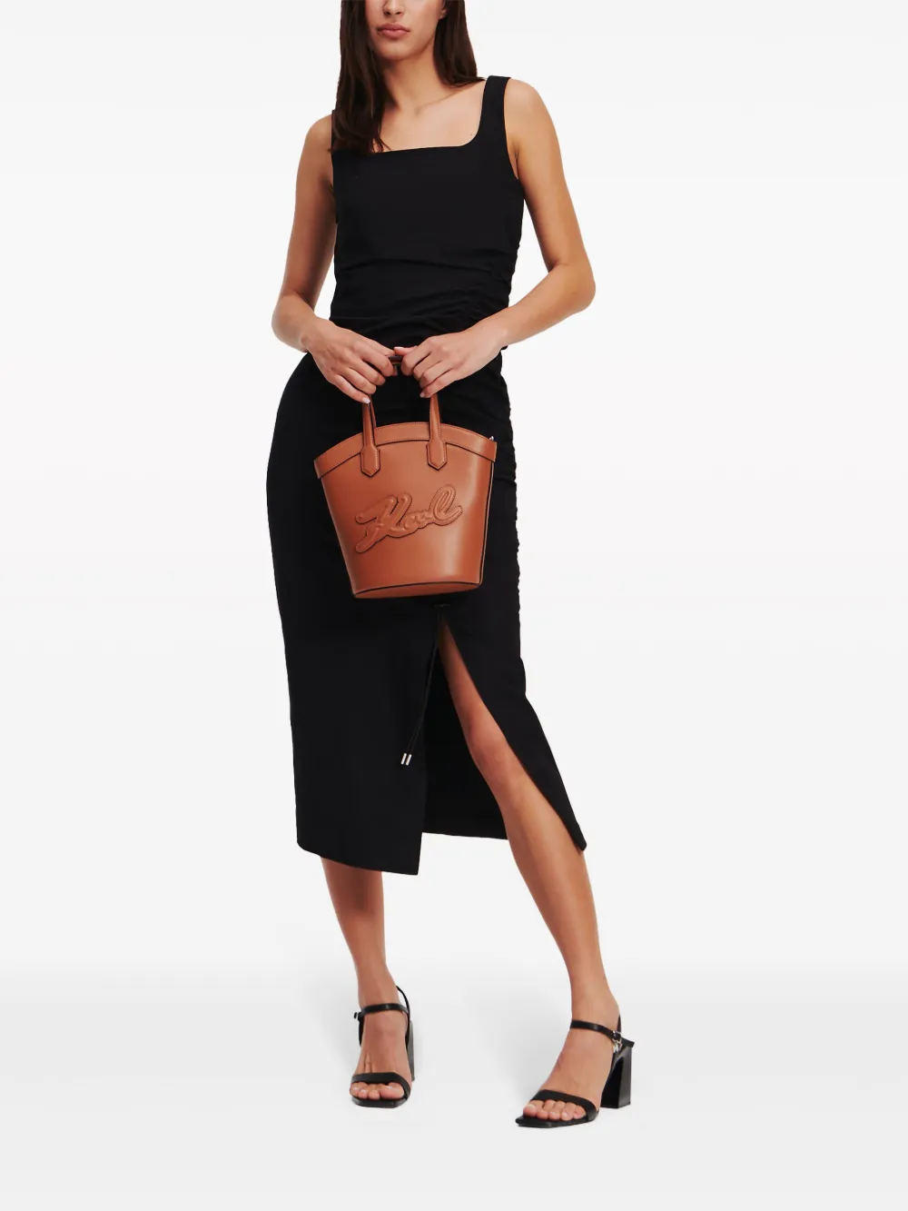 Платье миди со сборками KARL LAGERFELD, черный