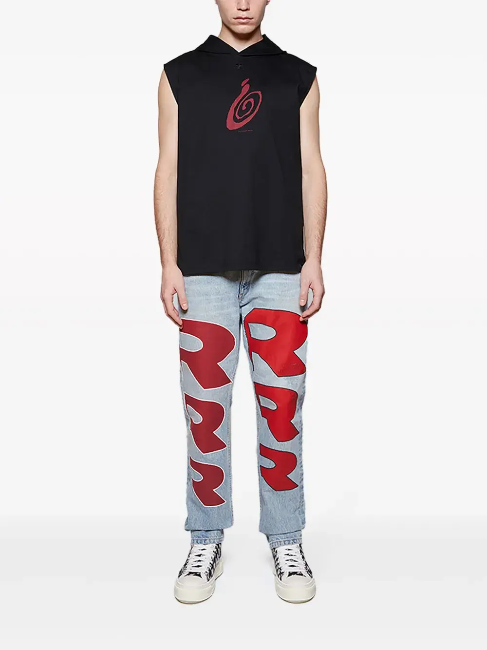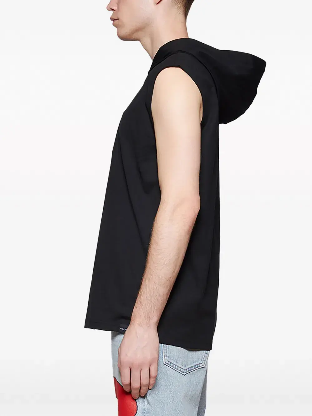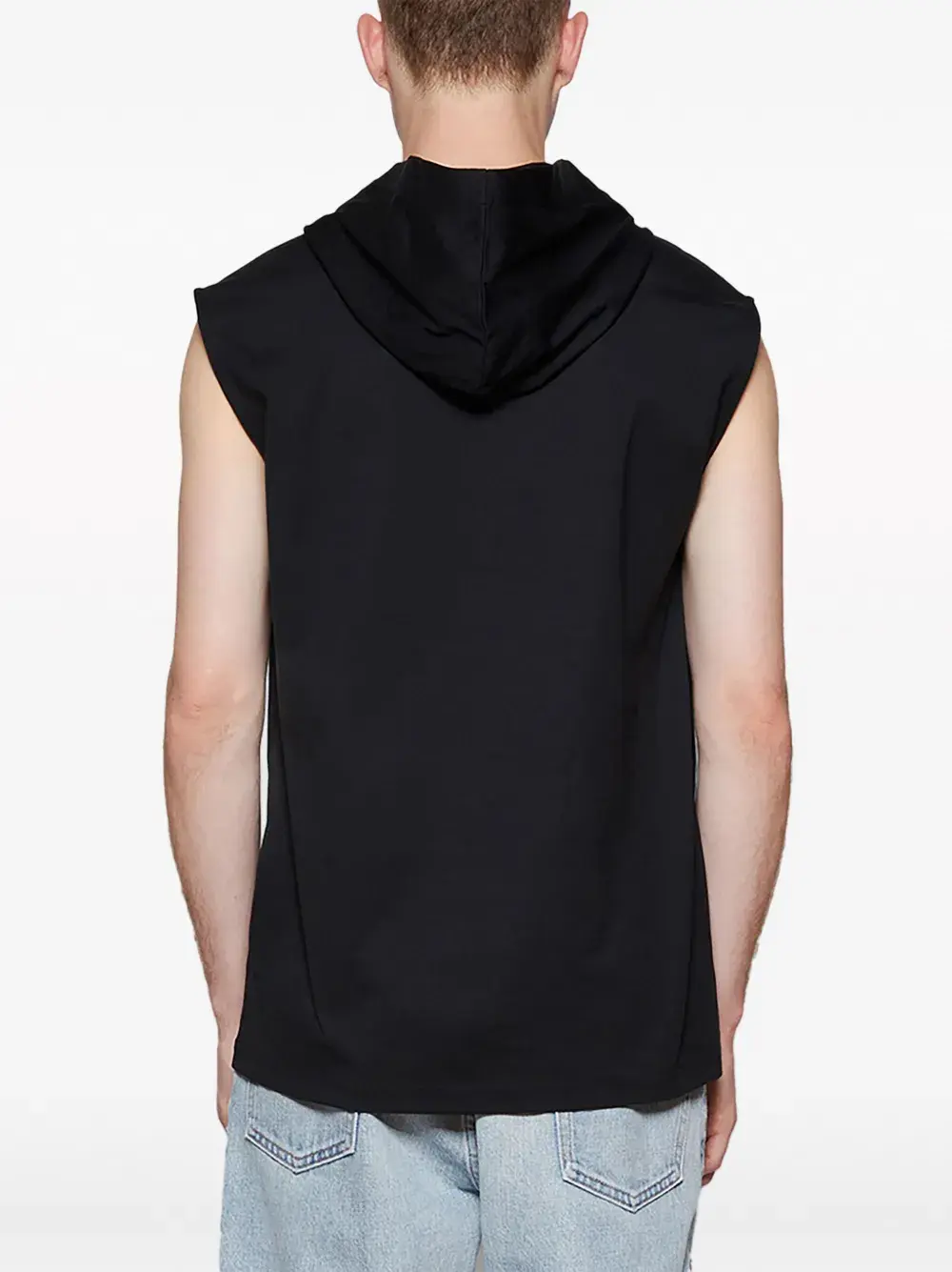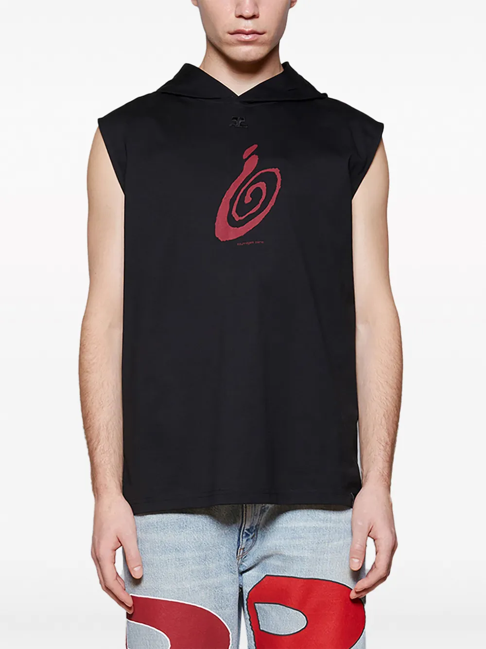 Черный, хлопок, логотип-аппликация, графичный принт спереди, классический капюшон, без рукавов и прямой подол.