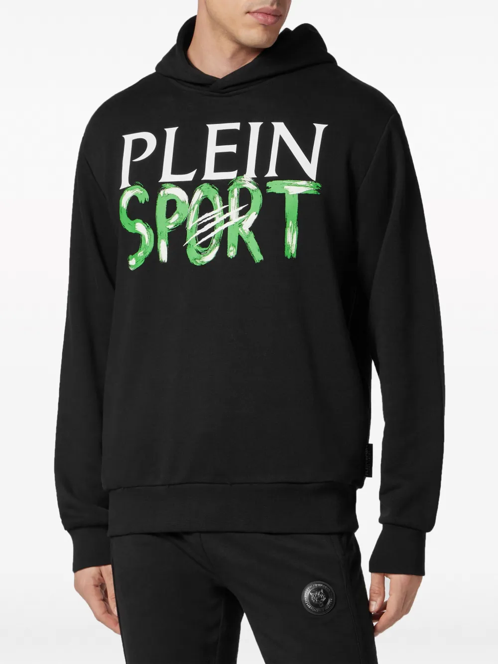 Черный, смесовый хлопок, прорезные карманы по бокам, классический капюшон, длинные рукава и прямой подол.