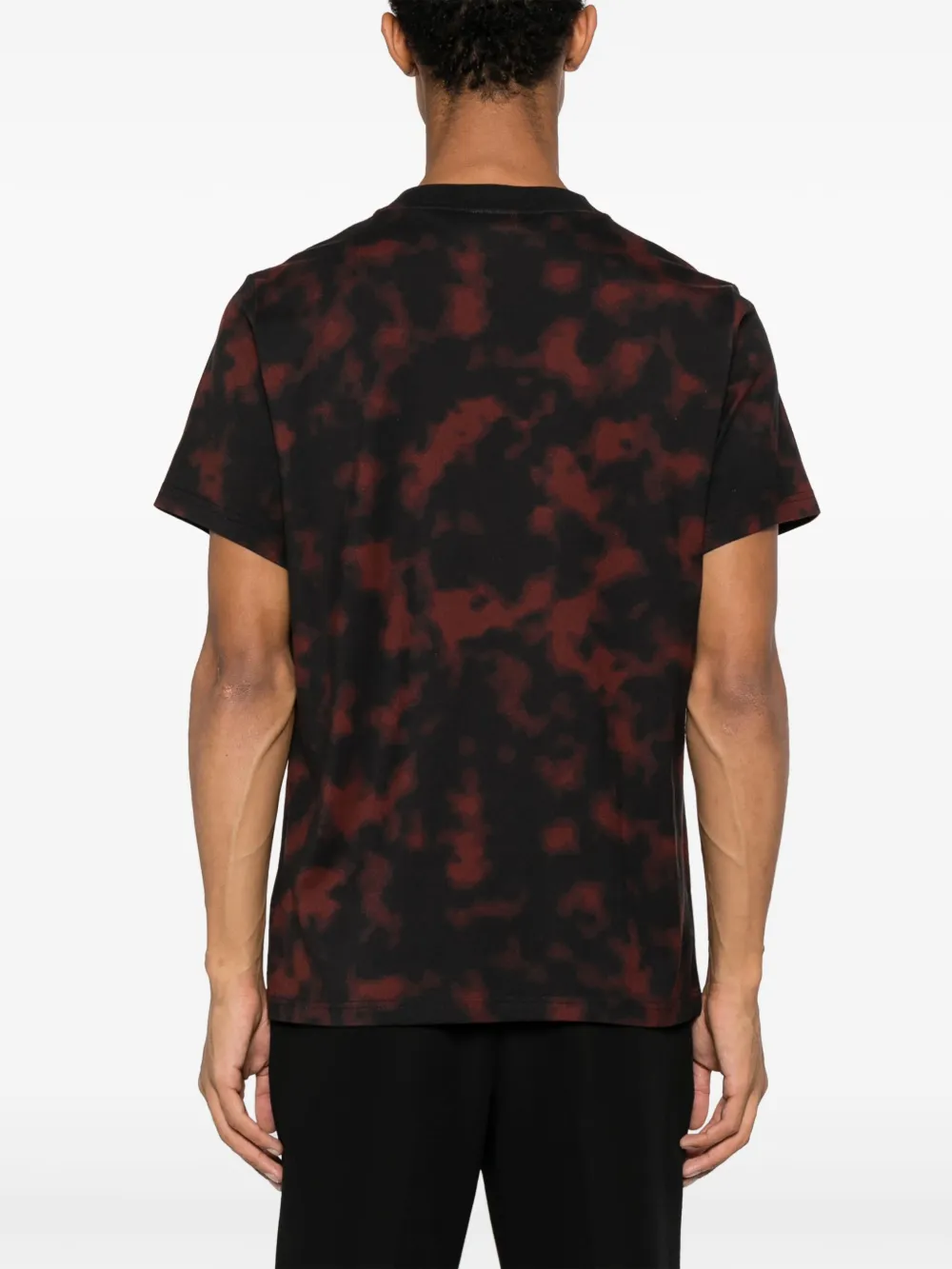 Черный, темно-коричневый, хлопок, черепаховая расцветка, нашивка с логотипом спереди, круглый вырез, короткие рукава и прямой подол.