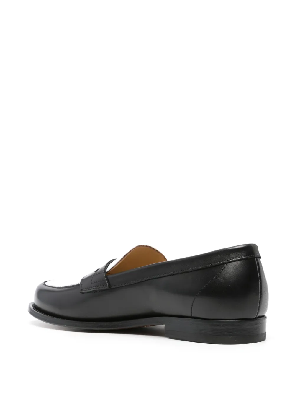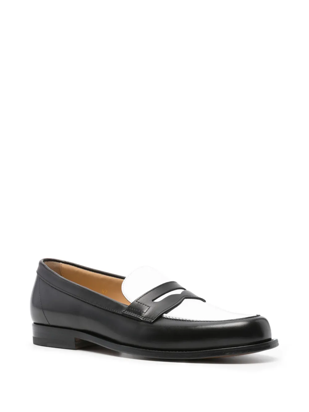 Черный/белый, телячья кожа, прорези на язычке, миндалевидный носок, модель без застежки, кожаная стелька с логотипом и плоская кожаная подошва.