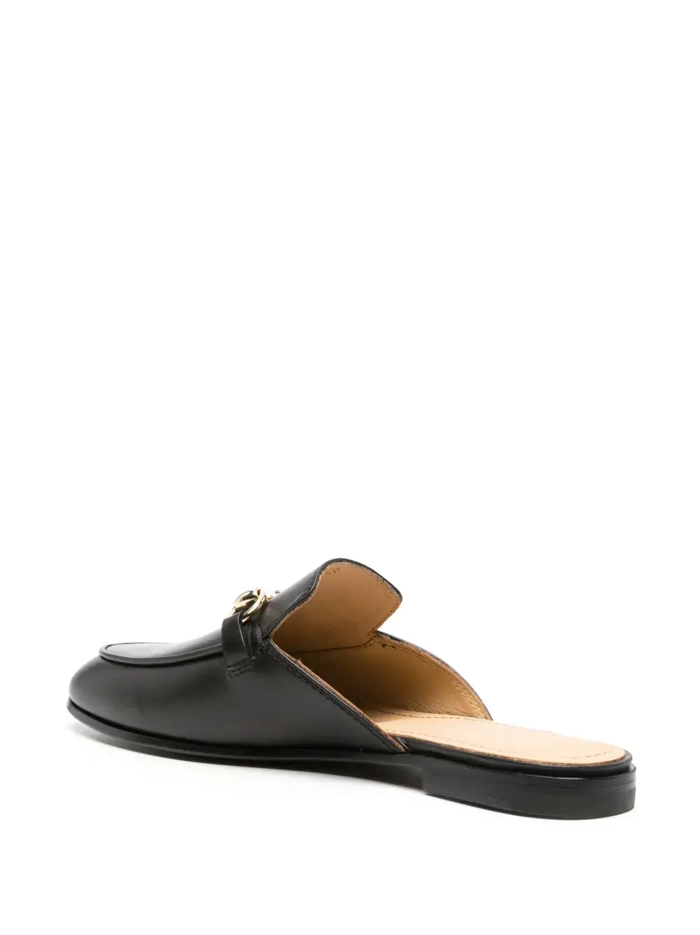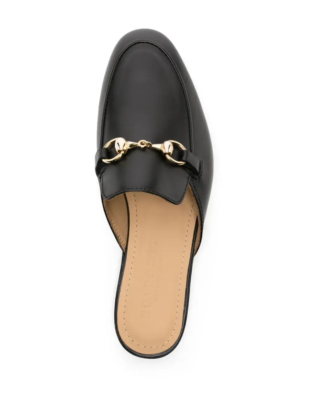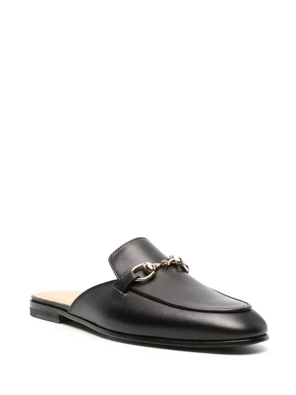 Черный, телячья кожа, знаковый декор Horsebit, миндалевидный носок, модель без застежки, кожаная стелька с логотипом и плоская кожаная подошва.