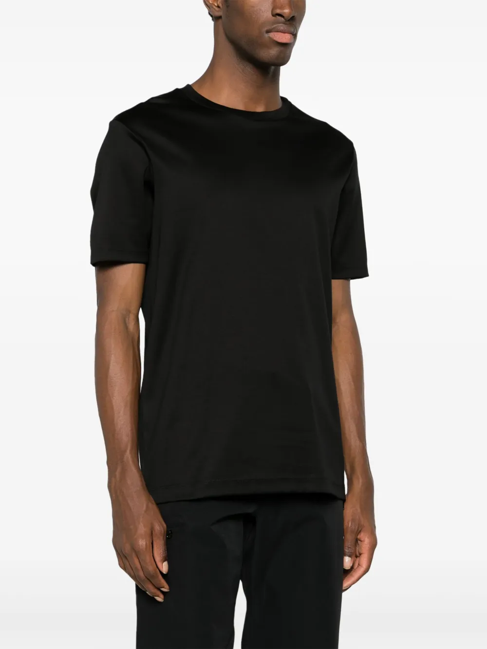 Черный, хлопок, отделка лентой с логотипом, круглый вырез, короткие рукава и прямой подол.