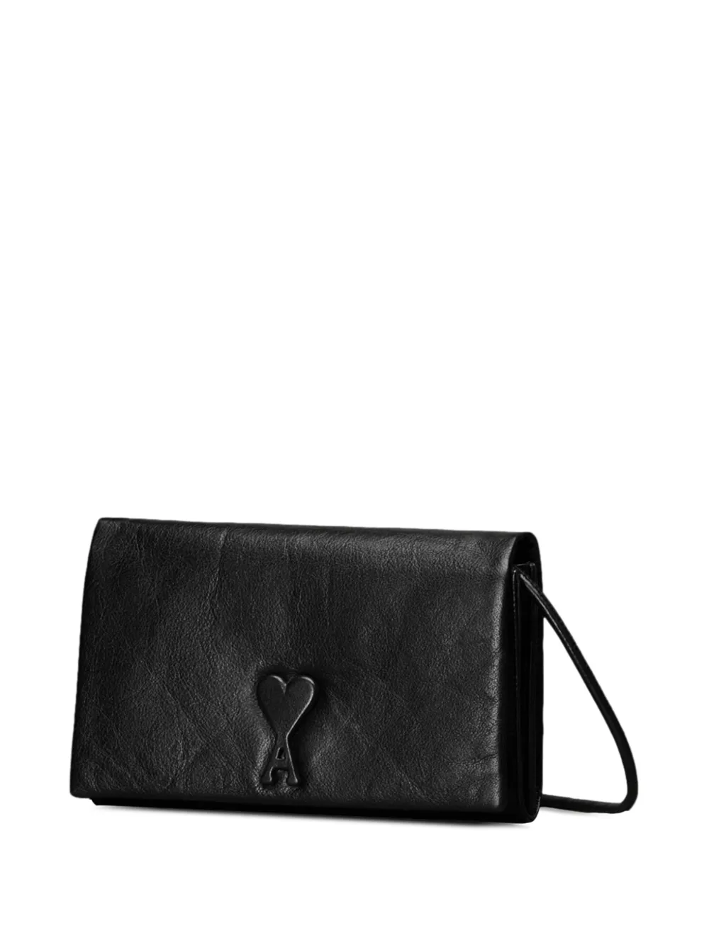 Сумка на плечо с тисненым логотипом AMI Paris, черный