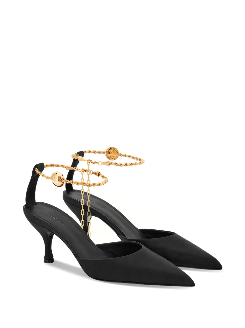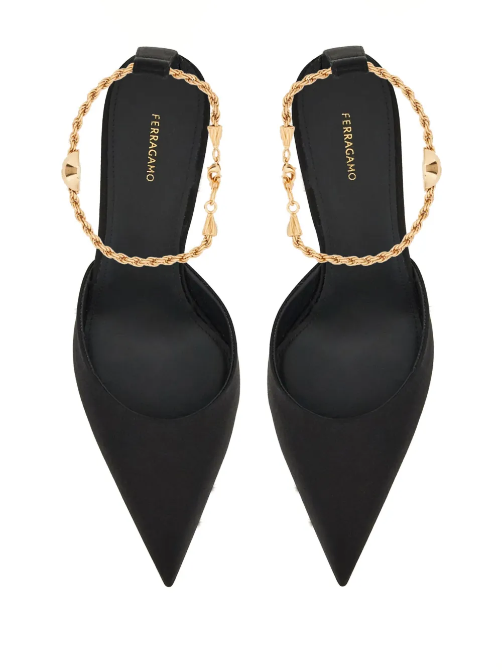 Атласные туфли с цепочкой Ferragamo, черный 68 570₽