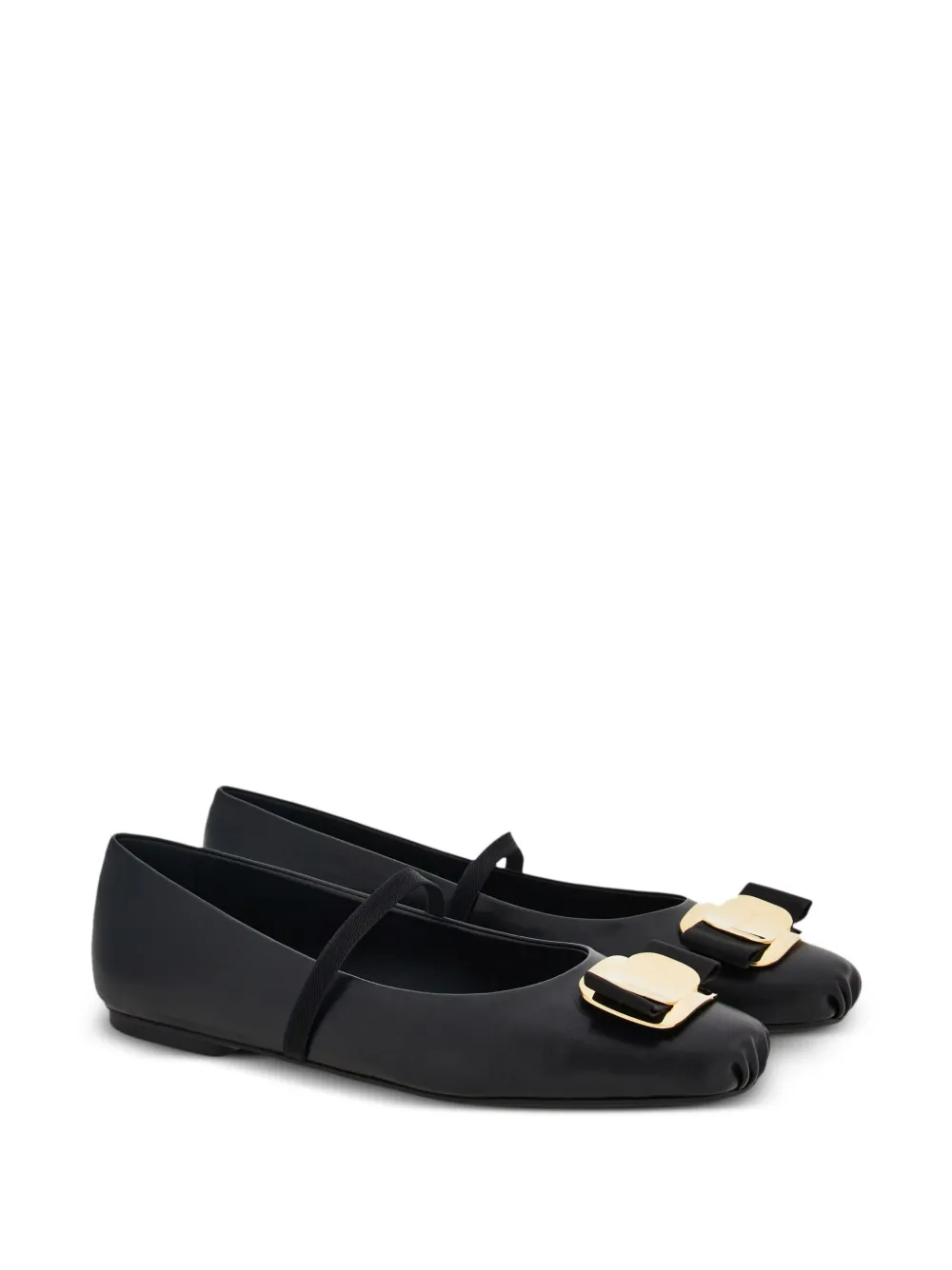 Черный, кожа, знаковый декор Vara в виде банта, золотистая фурнитура, закругленный носок, модель без застежки, кожаная стелька с логотипом и плоская подошва.