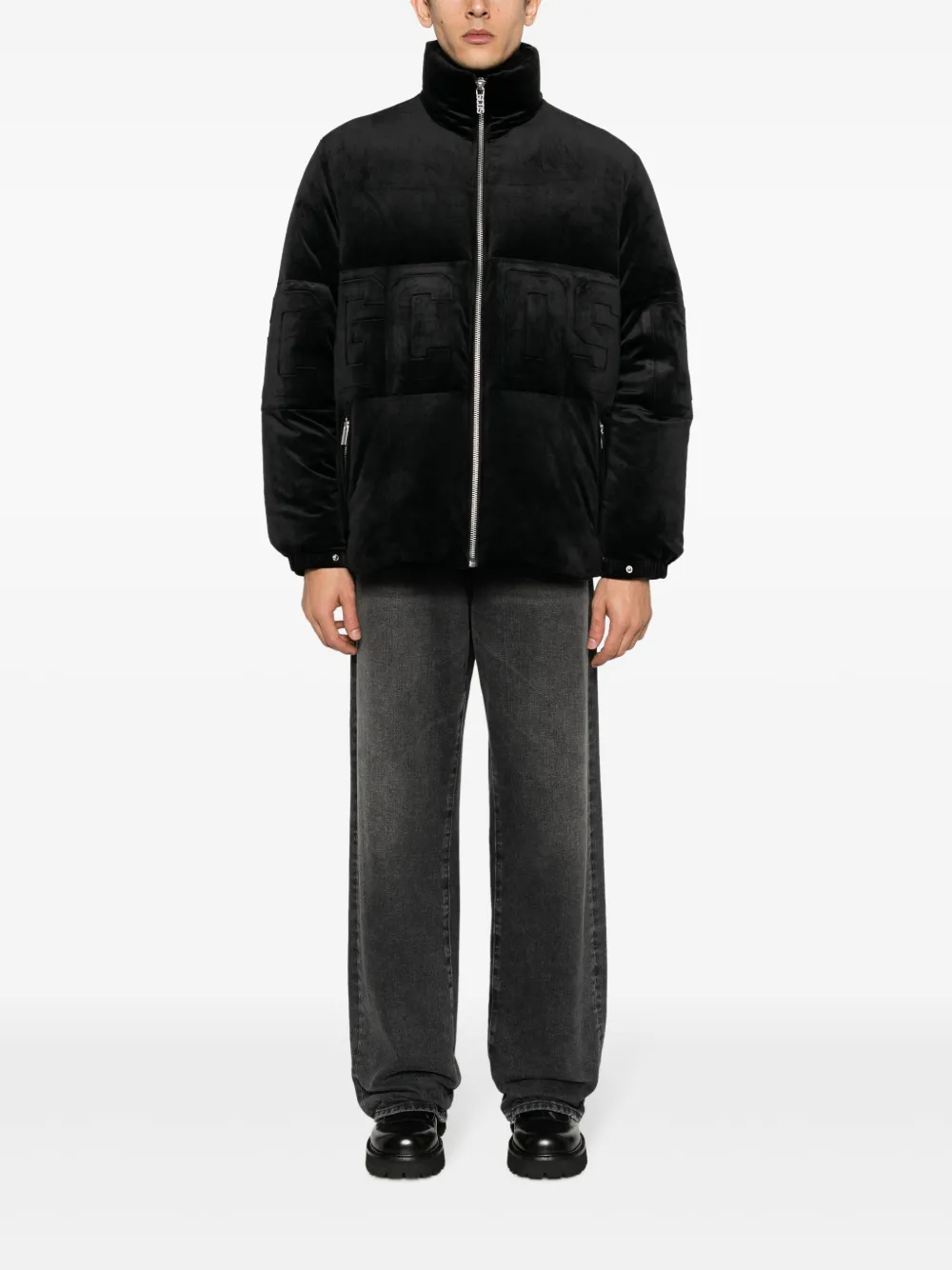 Пуховик с тисненым логотипом GCDS, черный