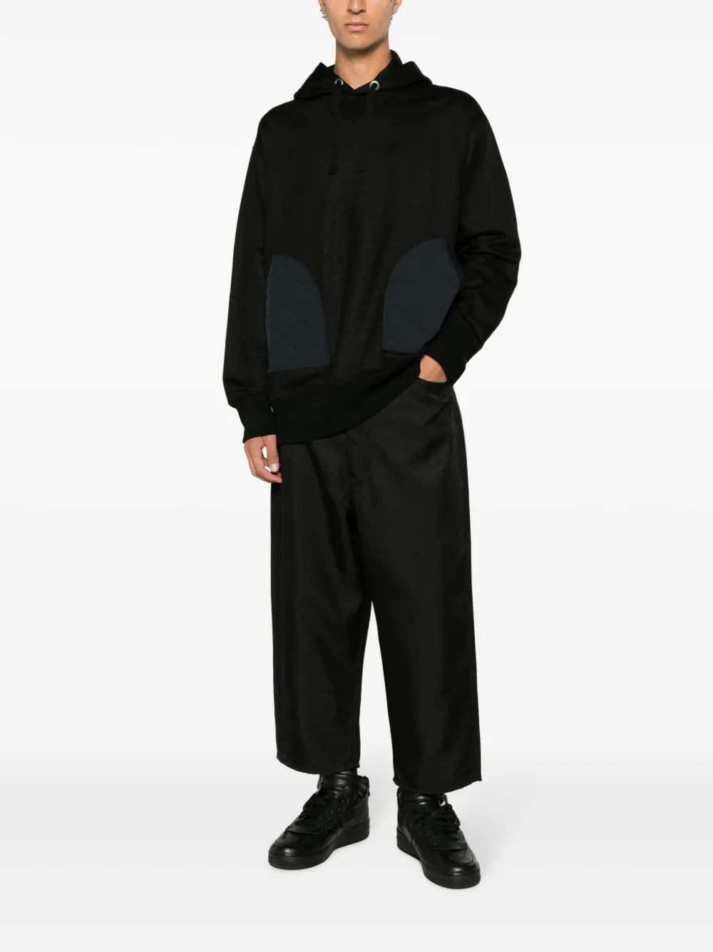 Толстовка с капюшоном из хлопка с рипстоп-панелями Junya Watanabe MAN, черный 54 946₽
