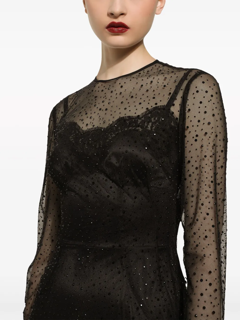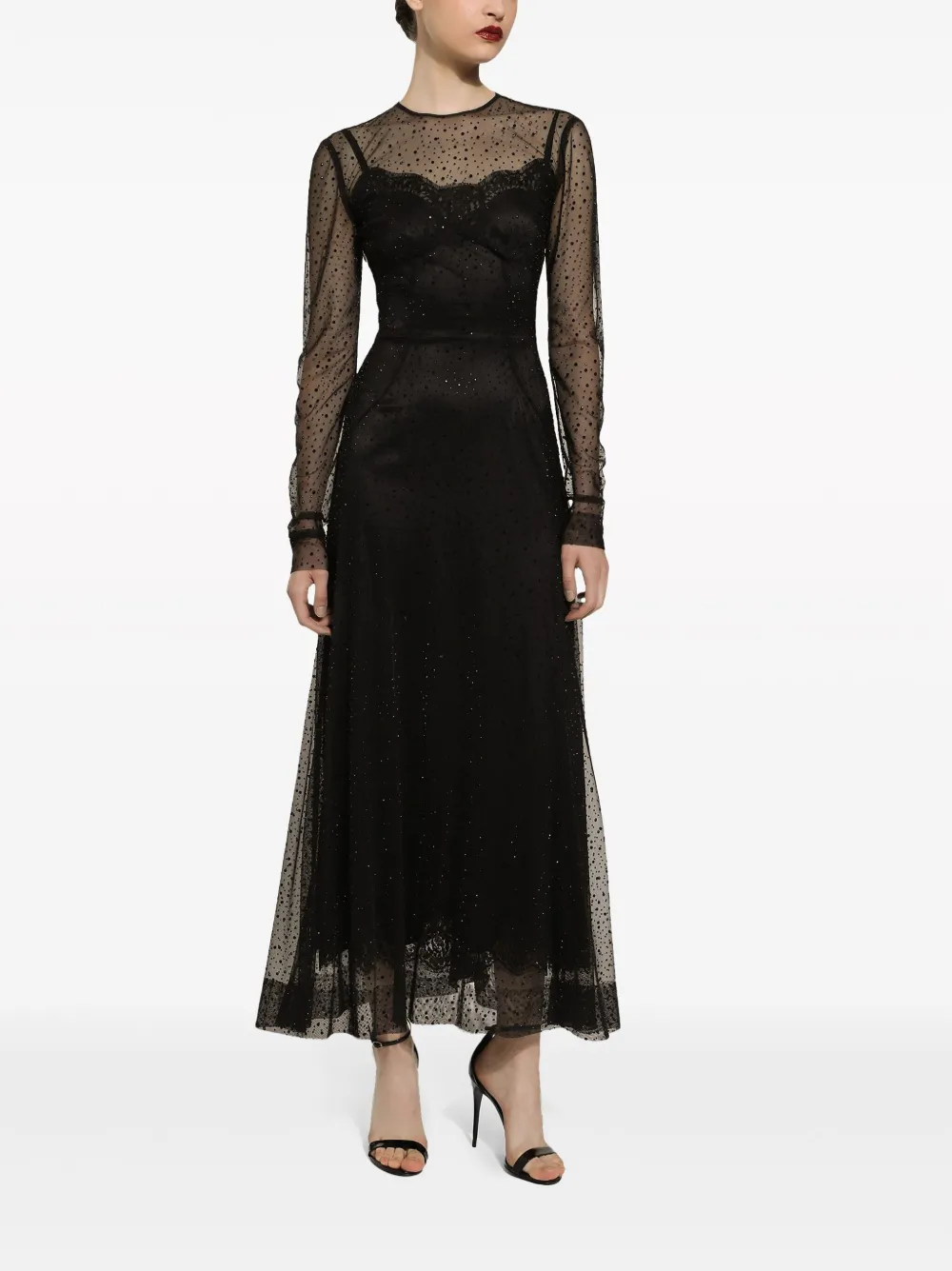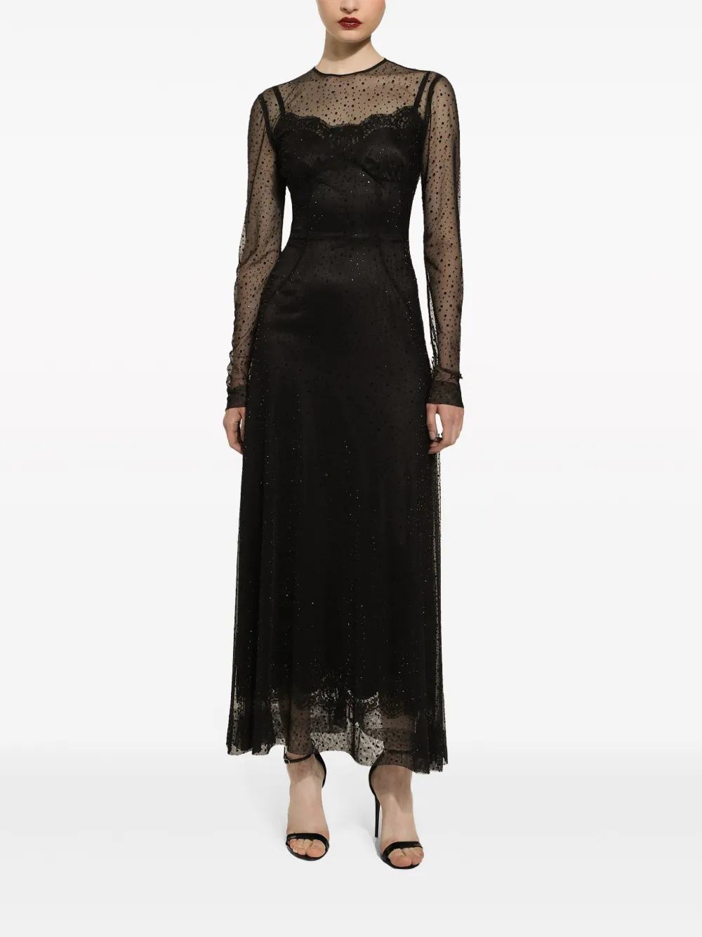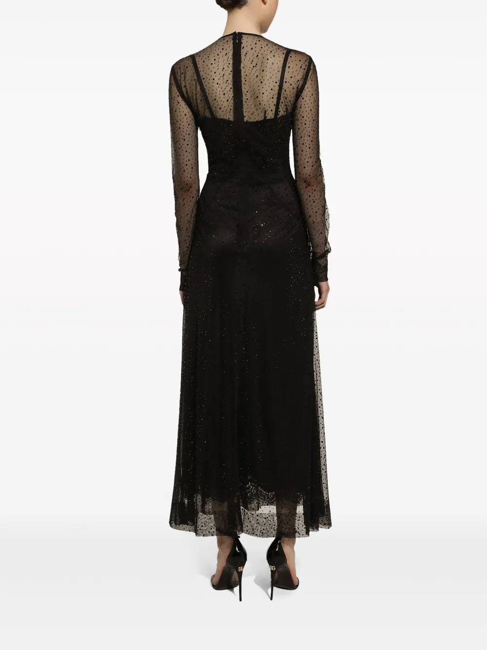 Платье макси А-силуэта со стразами DOLCE & GABBANA, черный