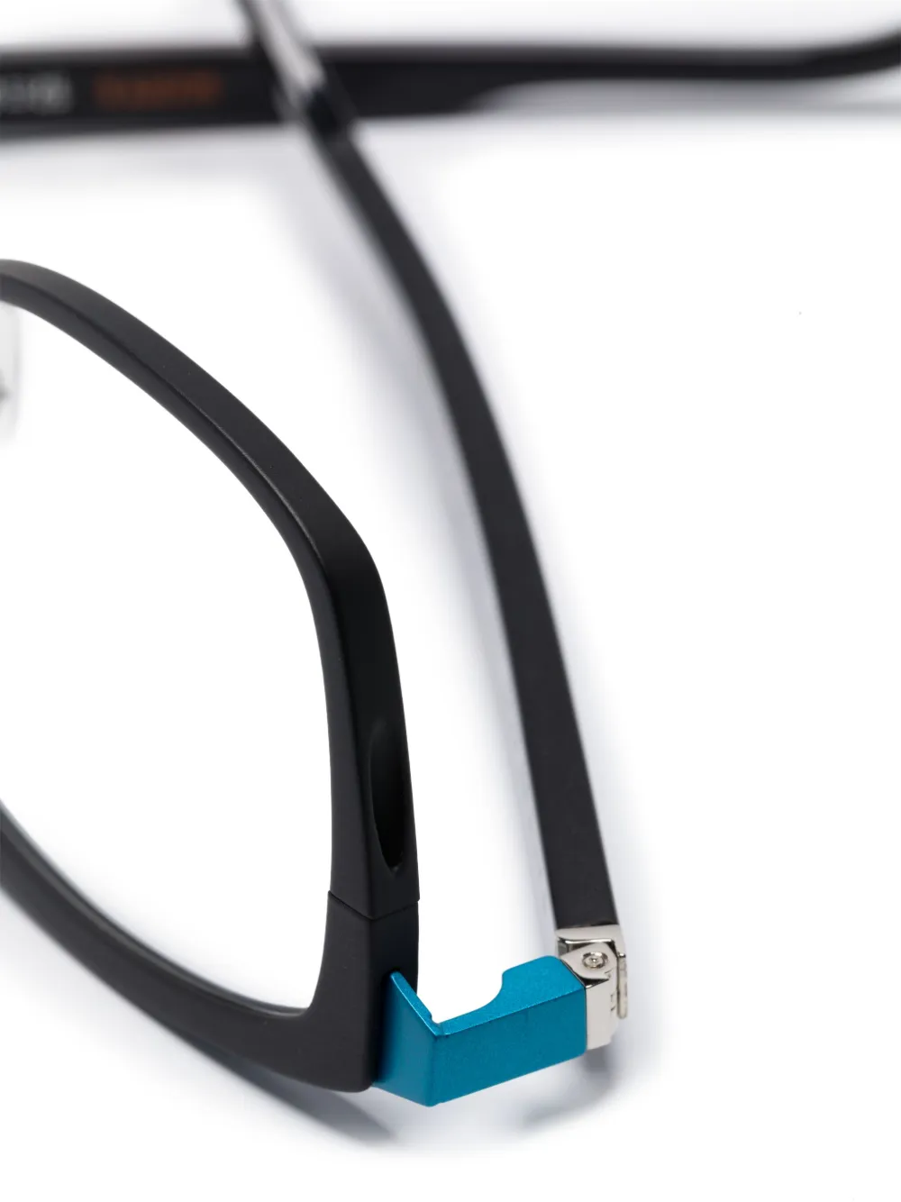 Черный/синий, металл, дизайн колор-блок, квадратная оправа, прозрачные линзы, скульптурные дужки и дужки с закругленными концами. В комплект входит защитный чехол для очков. Обратите внимание, что на FARFETCH продаются оправы с линзами без диоптрий.