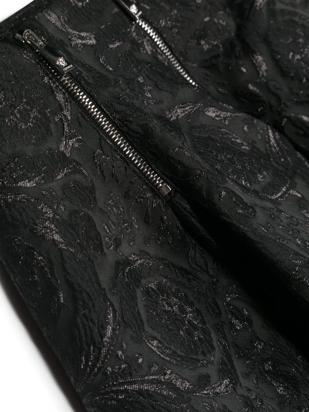 Черный, смесовый шелк, знаковый принт Barocco, складки, отделка с декоративной молнией, серебристая фурнитура, узор Medusa Head, потайная застежка на молнии сбоку, цельная подкладка и прямой подол.
