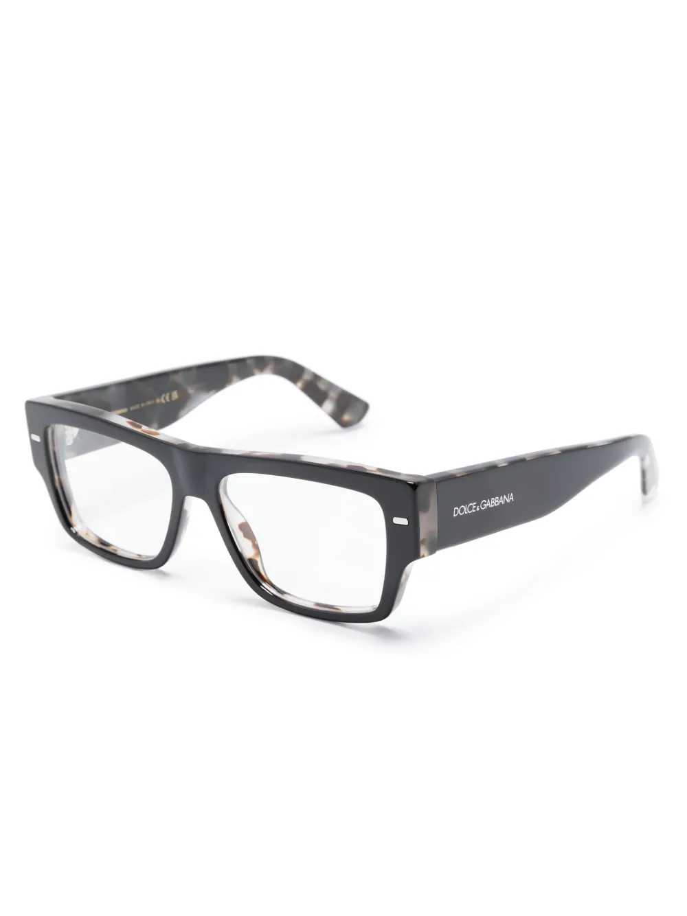 Черный/серый, ацетат, прямоугольная оправа, заклепки, прозрачные линзы, прямые дужки, гравированный логотип на дужках и дужки с закругленными концами. Обратите внимание, что на FARFETCH продаются оправы с линзами без диоптрий. В комплект входит защитный чехол для очков.