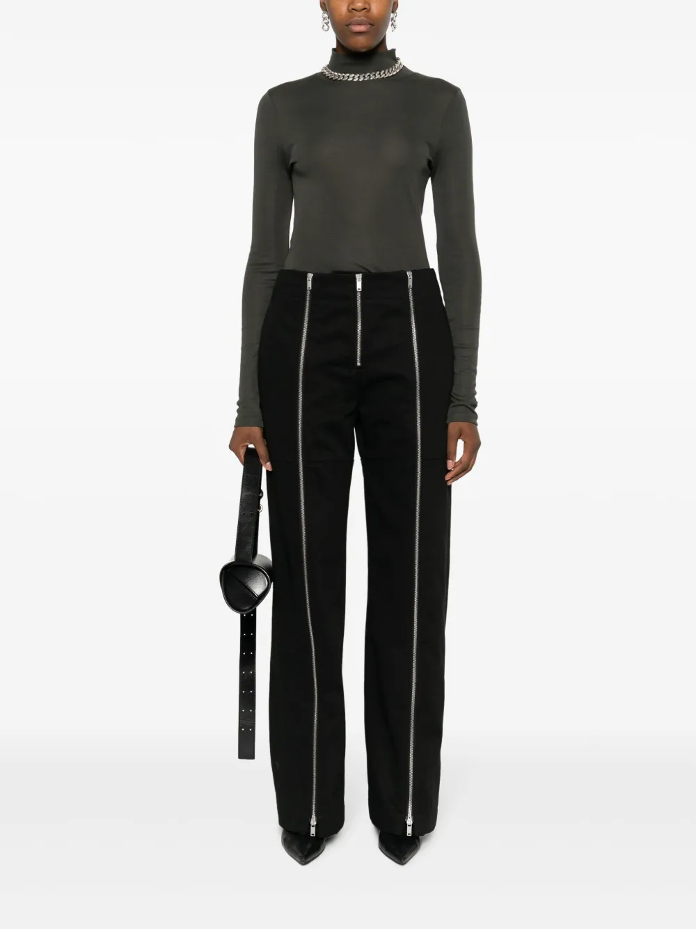 Брюки широкого кроя на молнии JIL SANDER, черный