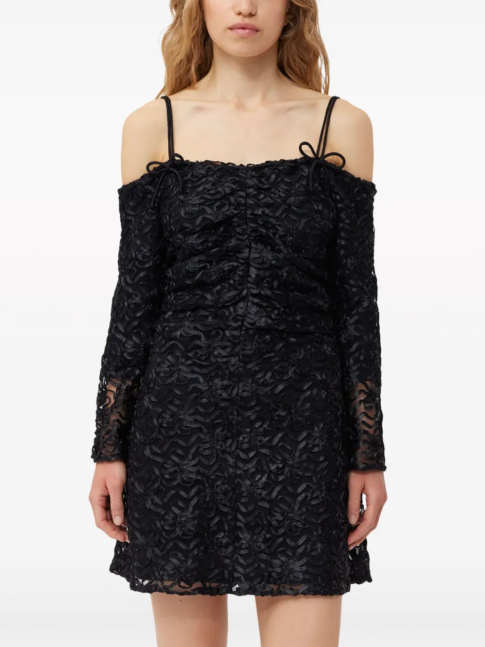 Подробнее о товаре: Черный, переработанный полиэстер, атласная отделка, бант, вставки из тюля, квадратный вырез, открытые плечи, застежка на молнии сзади, тонкие бретели и внутреннее платье-комбинация. Этот товар как минимум на 50% состоит из переработанных или повторно использованных материалов. Узнать больше о том, какие товары получают отметку «Ответственный выбор», можно из материала «Как мы оцениваем экологичность и этичность».