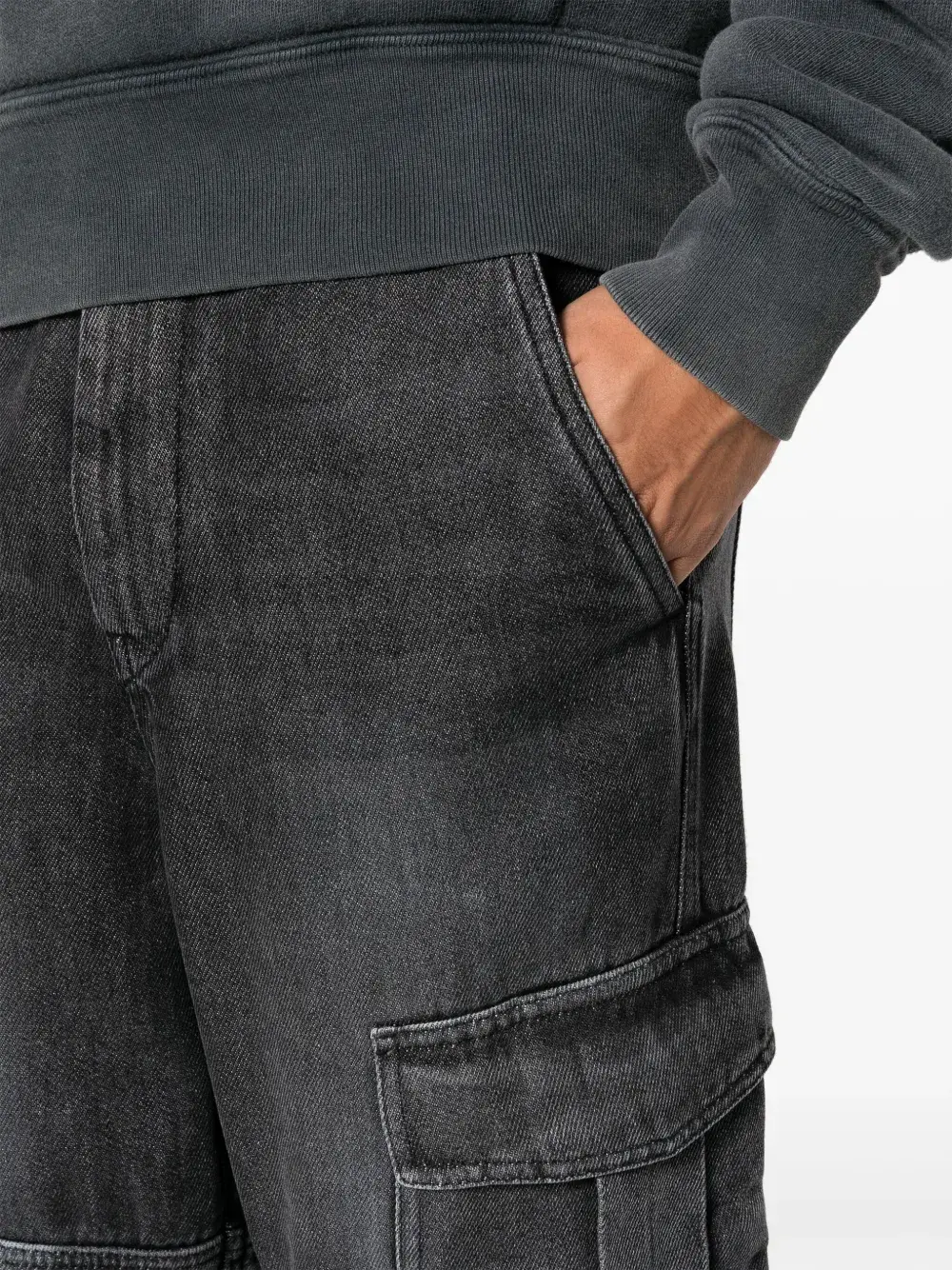Подробнее о товаре: Черный, хлопок, TENCEL, деним, вставки, эффект потертости, средняя посадка, широкий крой, ширинка на пуговицах, петли для ремня, два прорезных кармана по бокам, два накладных кармана по бокам и два кармана с клапанами сзади. Этот товар как минимум на 50% состоит из материалов, которые признаны более безопасными для окружающей среды, и/или произведены с использованием методов, которые помогают сократить потребление воды и химических веществ. Узнать больше о том, какие товары получают отметку «Ответственный выбор», можно из материала «Как мы оцениваем экологичность и этичность».