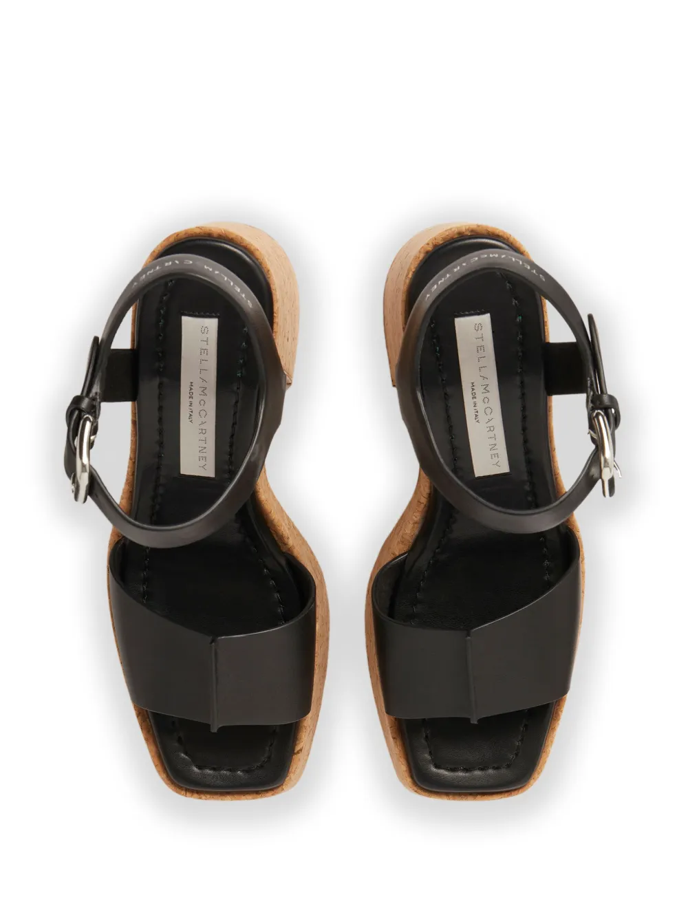 Подробнее о товаре: Черный, искусственная кожа, стелька с логотипом, ремешок на щиколотке с пряжкой, квадратный открытый носок, блочный каблук и пробковая подошва. Этот товар как минимум на 50% состоит из переработанных или повторно использованных материалов. Узнать больше о том, какие товары получают отметку «Ответственный выбор», можно из материала «Как мы оцениваем экологичность и этичность».