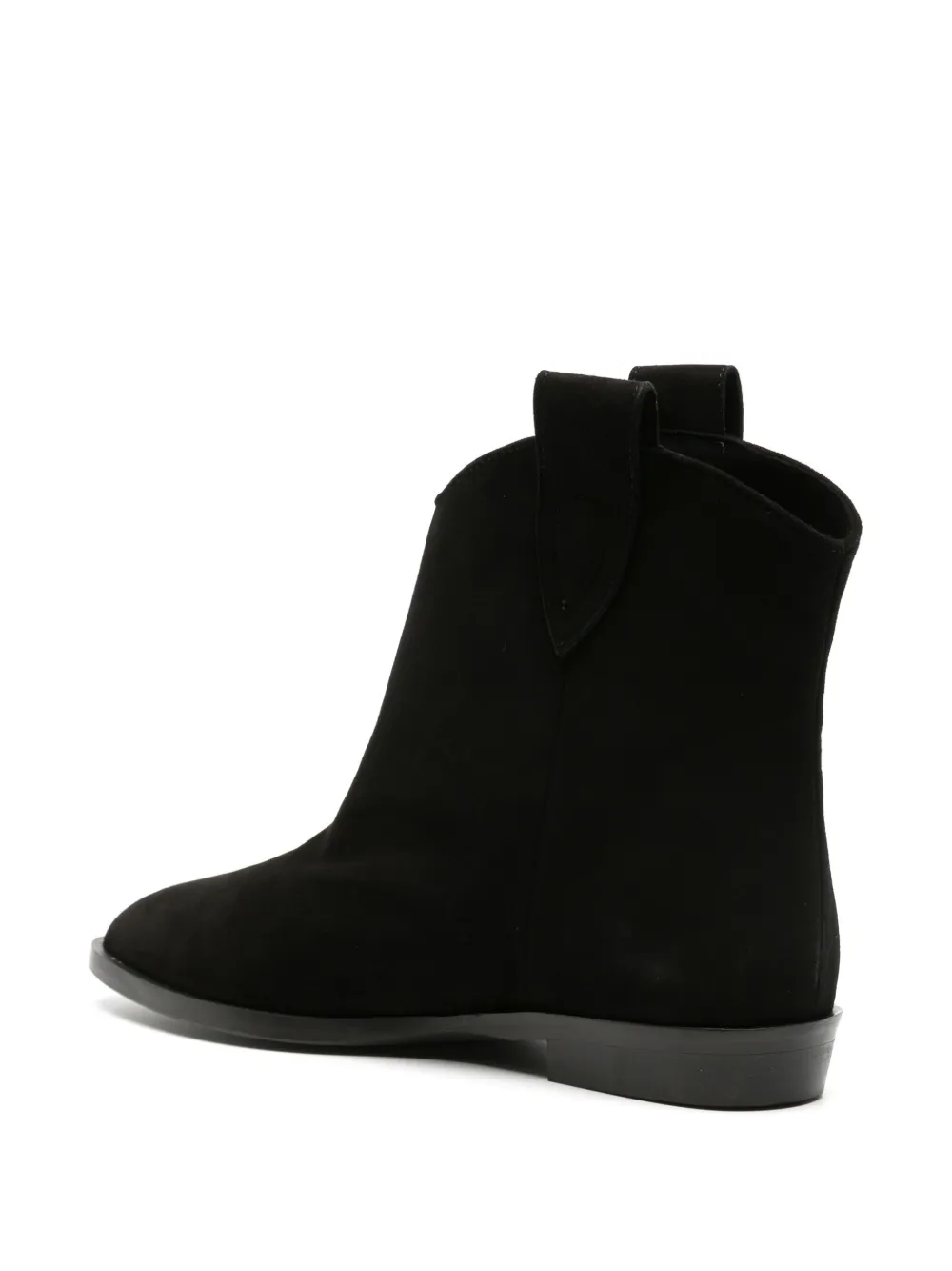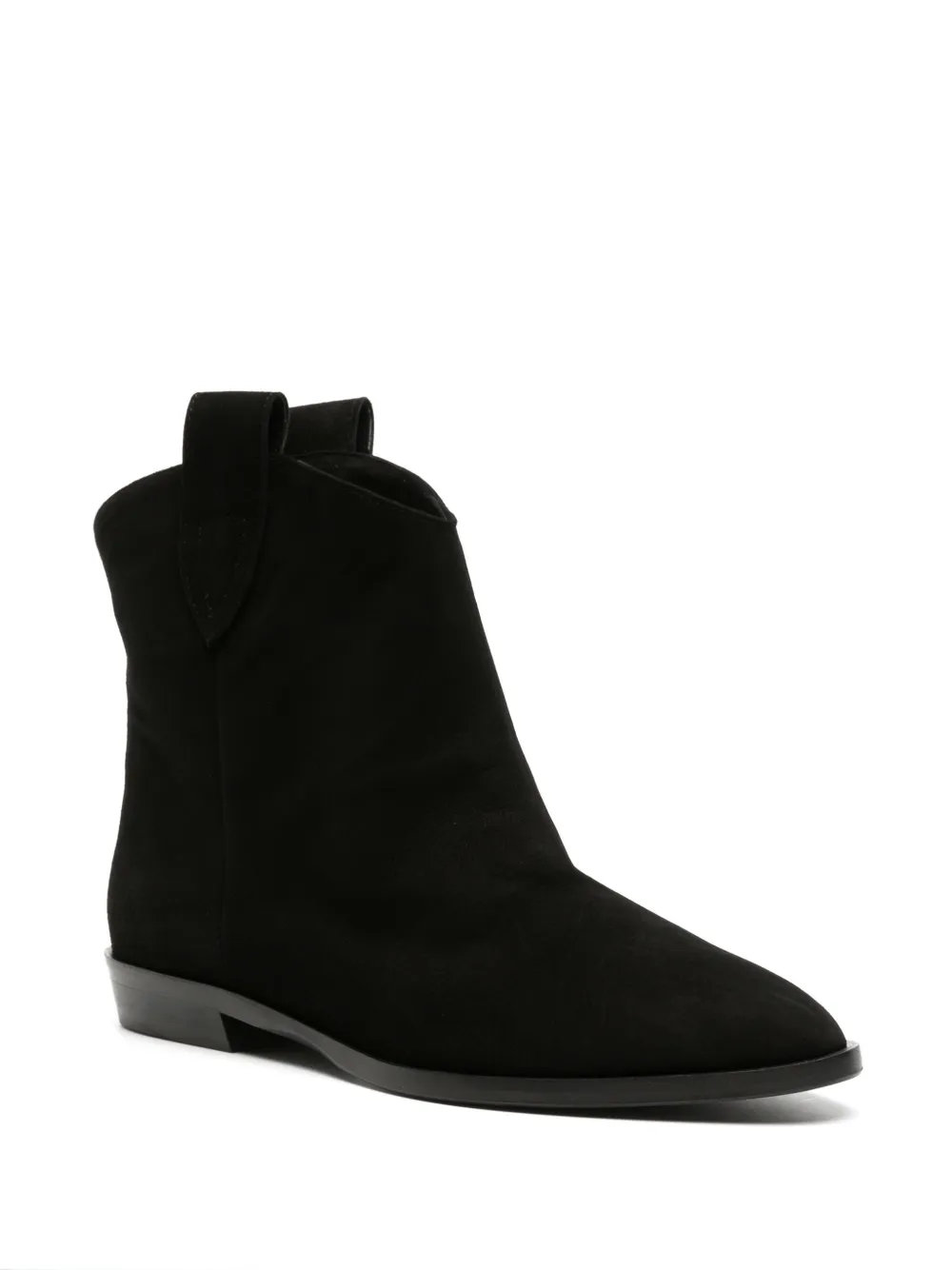 Черный, замша из телячьей кожи, телячья кожа, двойная петля для подтягивания, модель без застежки, заостренный носок, стелька с логотипом и плоская резиновая подошва.