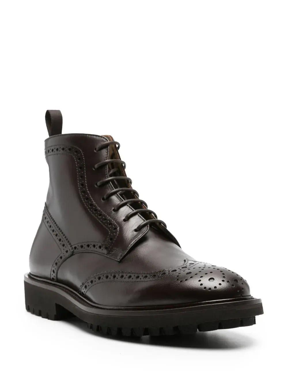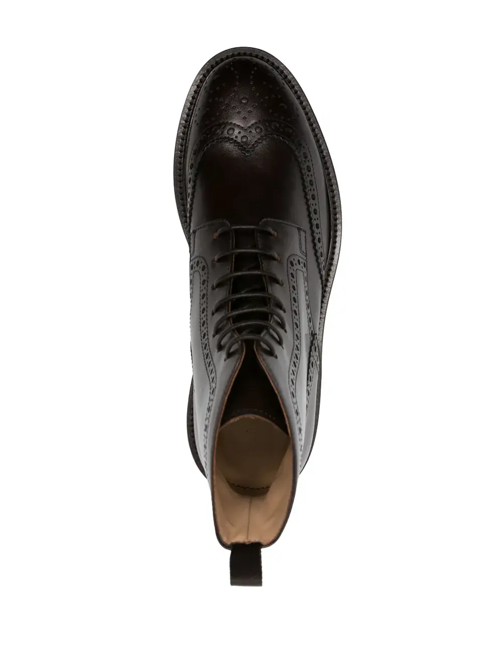 Кофейный, телячья кожа, вставки, перфорация, декоративная строчка, однотонная расцветка, закругленный носок, шнуровка спереди, петля для подтягивания сзади, кожаная подкладка, кожаная стелька с логотипом и рифленая резиновая подошва.
