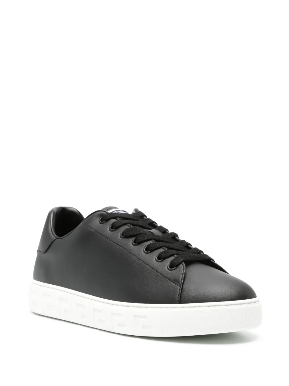 Белый/черный, искусственная кожа, тисненый орнамент Greca, нашивка с логотипом на язычке, задник с логотипом, строчка в тон, закругленный носок, шнуровка спереди, уплотненная щиколотка, стелька с логотипом и плоская резиновая подошва. В комплект входит мешок-пыльник для хранения.