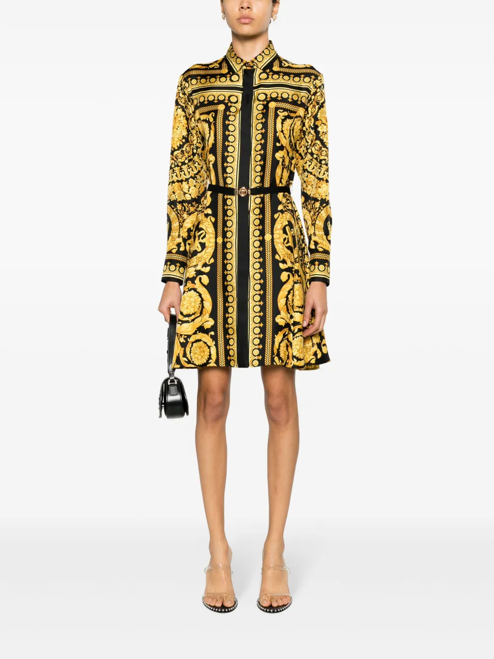 Шелковое платье мини Heritage с принтом VERSACE, черный