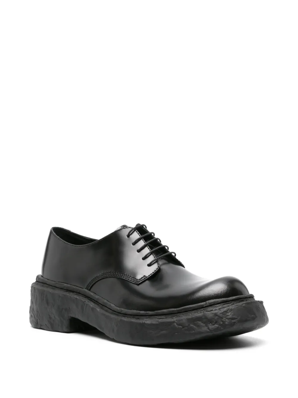 Черный, телячья кожа, стелька с логотипом, шнуровка спереди, закругленный носок и блочный каблук. Это унисекс-модель. Обратите внимание, что для нее используется мужская размерная сетка.