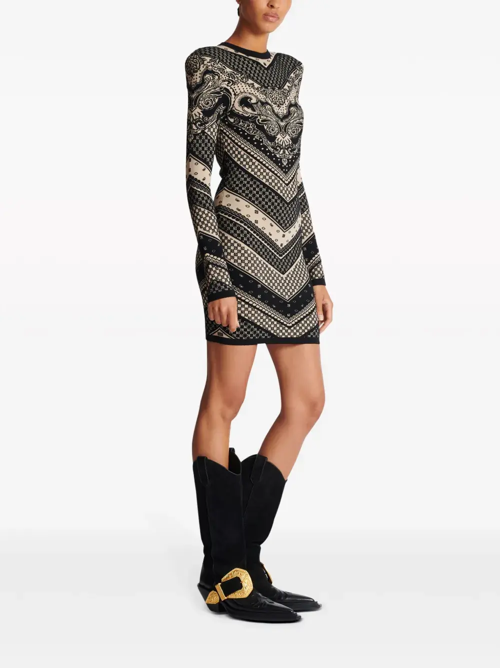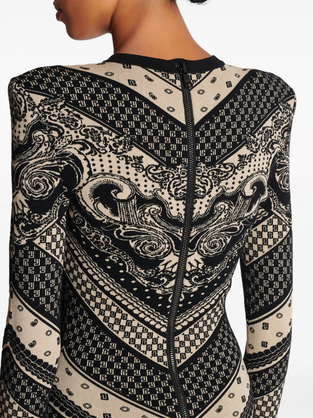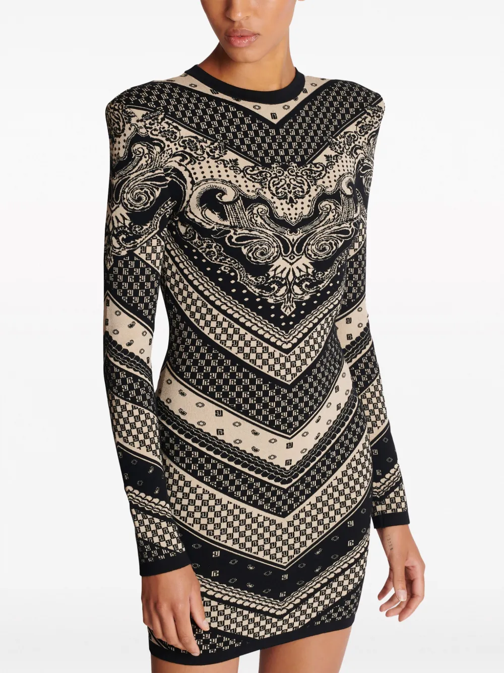 Трикотажное платье мини с монограммой BALMAIN, черный